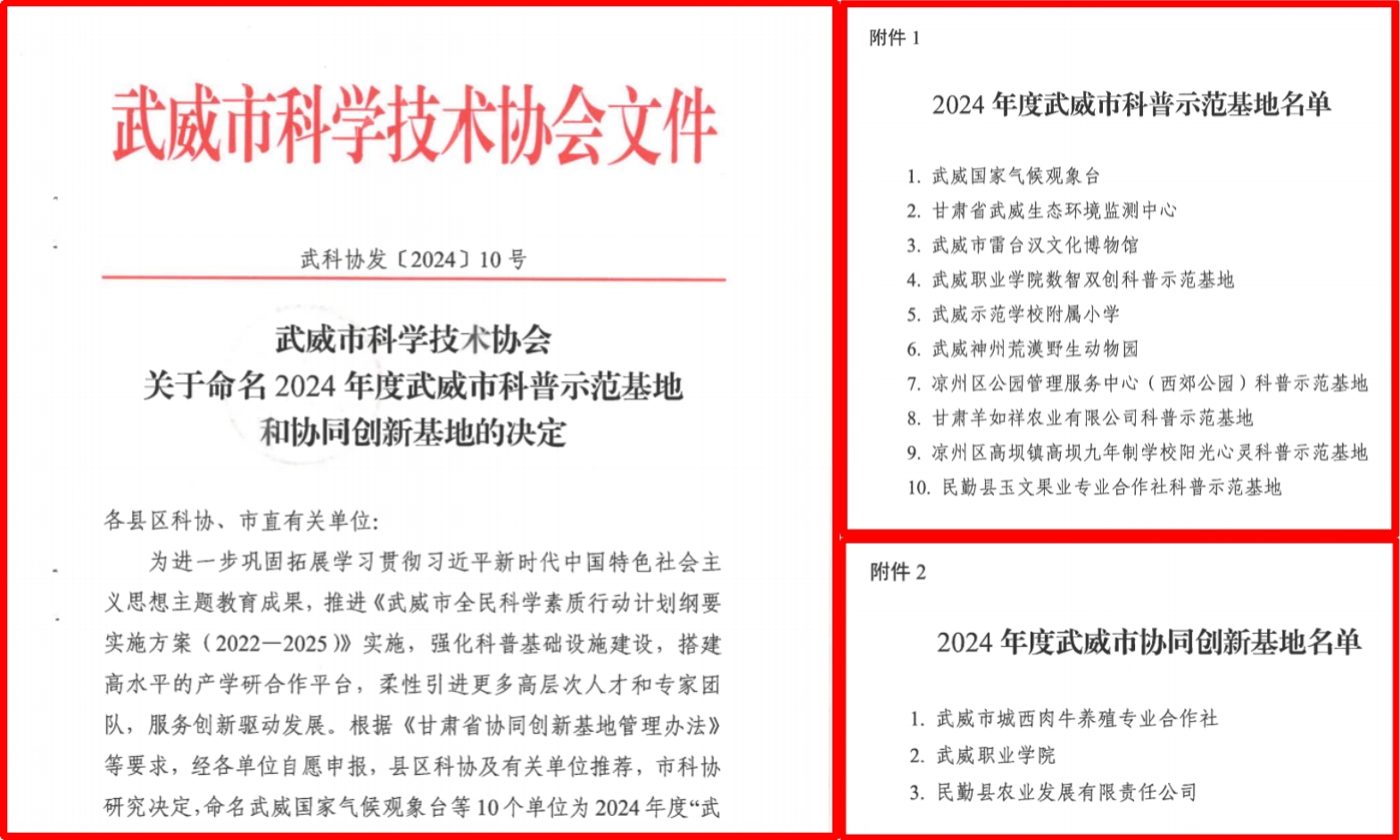 武威職業(yè)學(xué)院喜獲2024年武威市科普示范基地和協(xié)同創(chuàng)新基地
