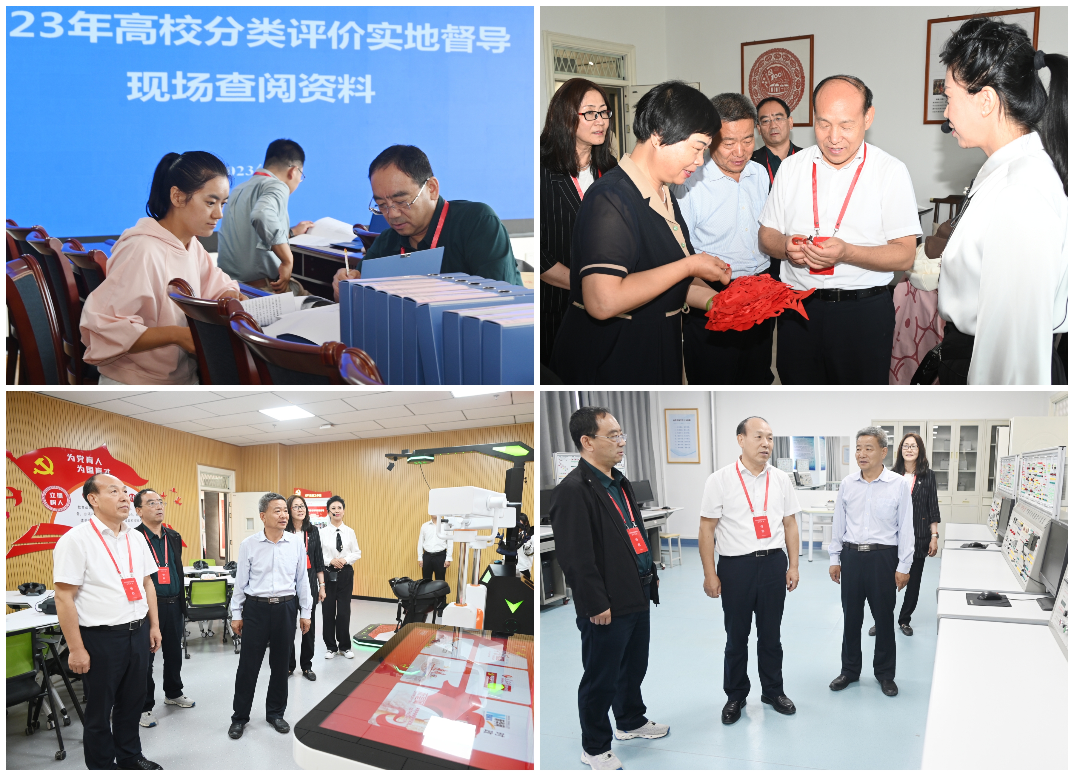 督導期間,專家組現(xiàn)場詳細查閱了資料,深入我校課程思政教學研究示范中心、紅色文化藝術(shù)館、名師工作室、傳統(tǒng)文化體驗中心、非遺體驗中心、VR智慧黨建體驗館、運動場所、學生食堂、公寓管理中心及中科低碳新能源技術(shù)學院專業(yè)實驗實訓室等教育教學、實驗實訓、科研平臺開展實地考察。