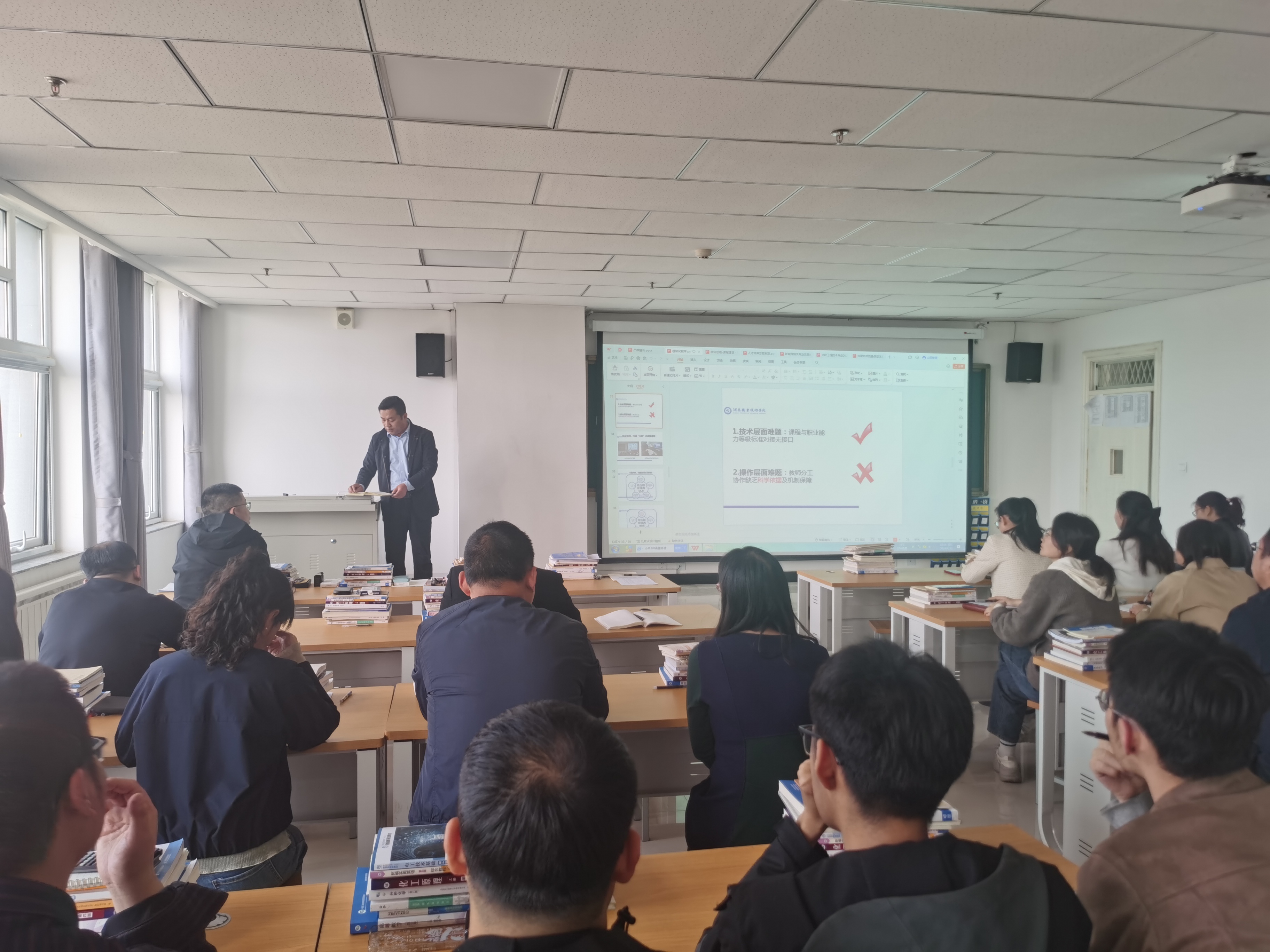 4月12日下午,中科低碳新能源技術(shù)學(xué)院在能源科技樓612教室召開光伏工程技術(shù)專業(yè)骨干教師國(guó)培項(xiàng)目培訓(xùn)匯報(bào)暨國(guó)家級(jí)教師創(chuàng)新團(tuán)隊(duì)高質(zhì)量發(fā)展研討交流會(huì),光伏工程技術(shù)國(guó)家級(jí)教師創(chuàng)新團(tuán)隊(duì)成員及專業(yè)教師共24人參加會(huì)議,會(huì)議由學(xué)院副院長(zhǎng)、國(guó)家級(jí)教師創(chuàng)新團(tuán)隊(duì)負(fù)責(zé)人黃述杰主持。