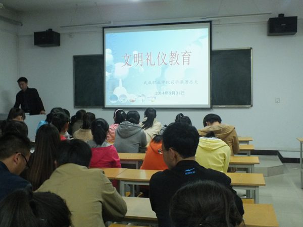 331日晚,在藥學(xué)系黨總支的指導(dǎo)下,藥學(xué)系團(tuán)總支組織各班共青團(tuán)員共計(jì)80余人在2號教學(xué)樓614教室開展了文明禮儀教育活動。