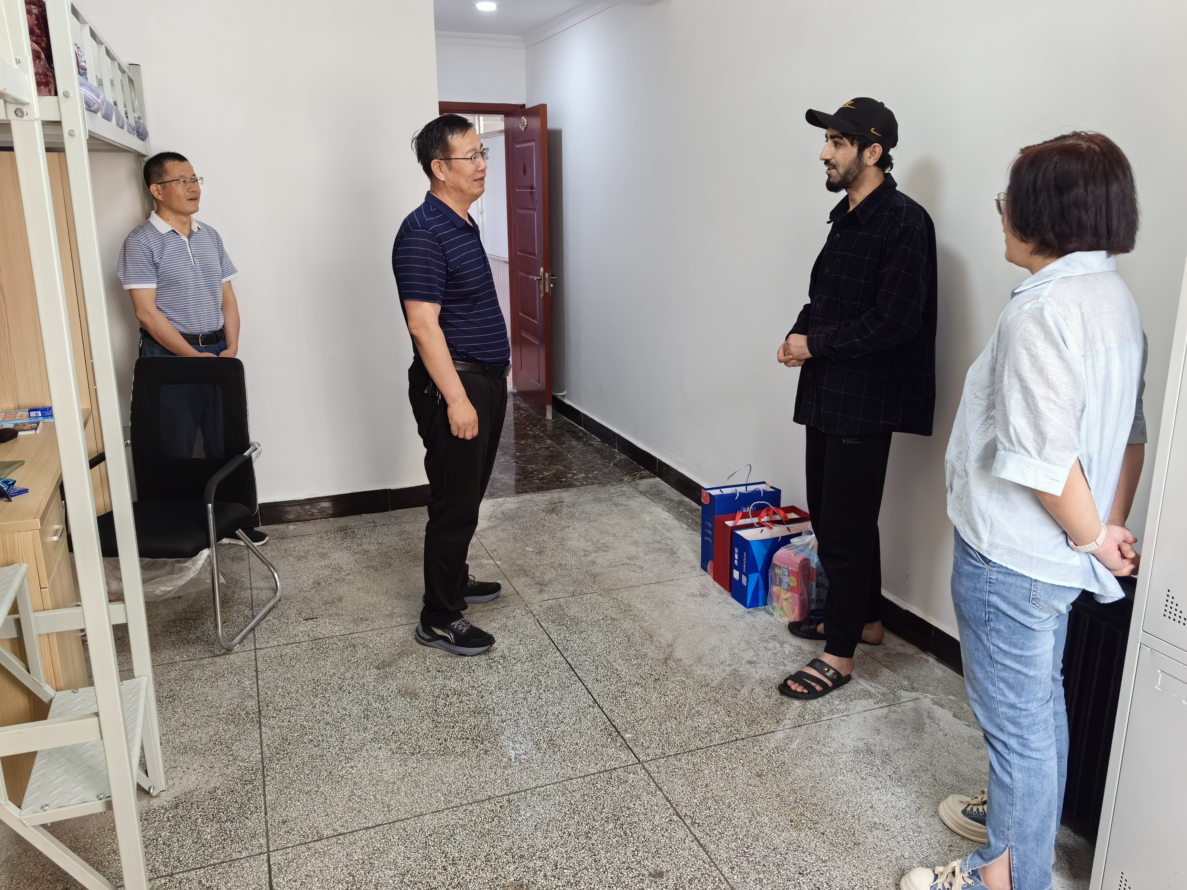 張開禮深入留學(xué)生宿舍、廚房,查看了解留學(xué)生住宿、生活情況,并代表學(xué)校黨委向留學(xué)生表達(dá)了節(jié)日的慰問和良好的祝愿,向留學(xué)生送上慰問品。在留學(xué)生公寓,張開禮與留學(xué)生親切交談,關(guān)切詢問留學(xué)生日常生活、專業(yè)學(xué)習(xí)、課程實(shí)訓(xùn)、畢業(yè)就業(yè)等情況。他鼓勵留學(xué)生們努力學(xué)習(xí),養(yǎng)成良好生活習(xí)慣,遵守公寓管理規(guī)則和安全條例,保持良好生活環(huán)境,同時也提醒留學(xué)生們端午節(jié)放假期間,不論是外出還是在校,都要注意安全,遵守法律法規(guī)和校紀(jì)校規(guī)。