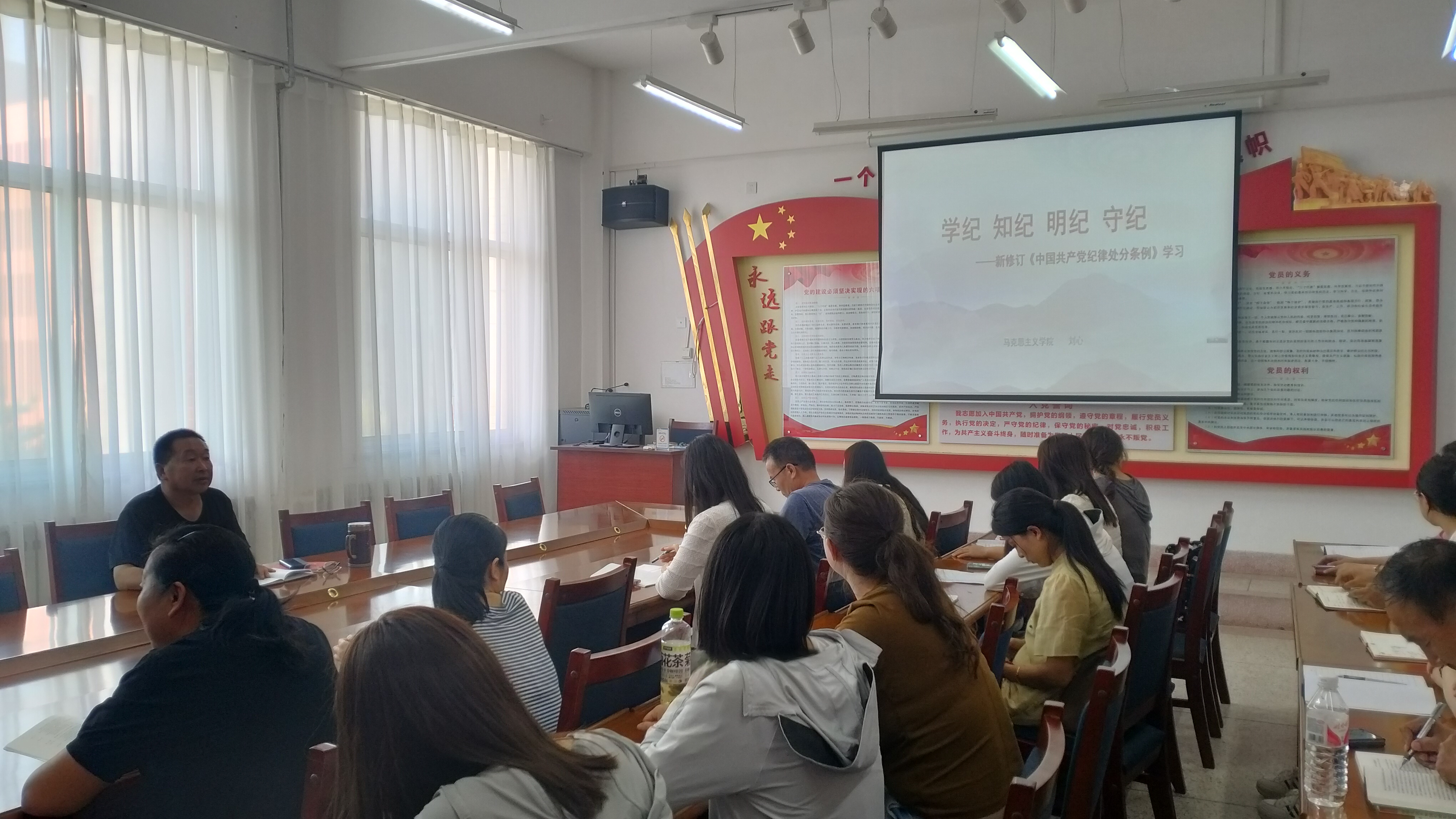 為扎實(shí)推進(jìn)黨紀(jì)學(xué)習(xí)教育,進(jìn)一步嚴(yán)明政治紀(jì)律和政治規(guī)矩,引導(dǎo)黨員教師真正做到學(xué)紀(jì)、知紀(jì)、明紀(jì)、守紀(jì)。5月21日,馬克思主義學(xué)院黨支部書記劉心作了黨紀(jì)學(xué)習(xí)教育專題輔導(dǎo),全體黨員參加。
