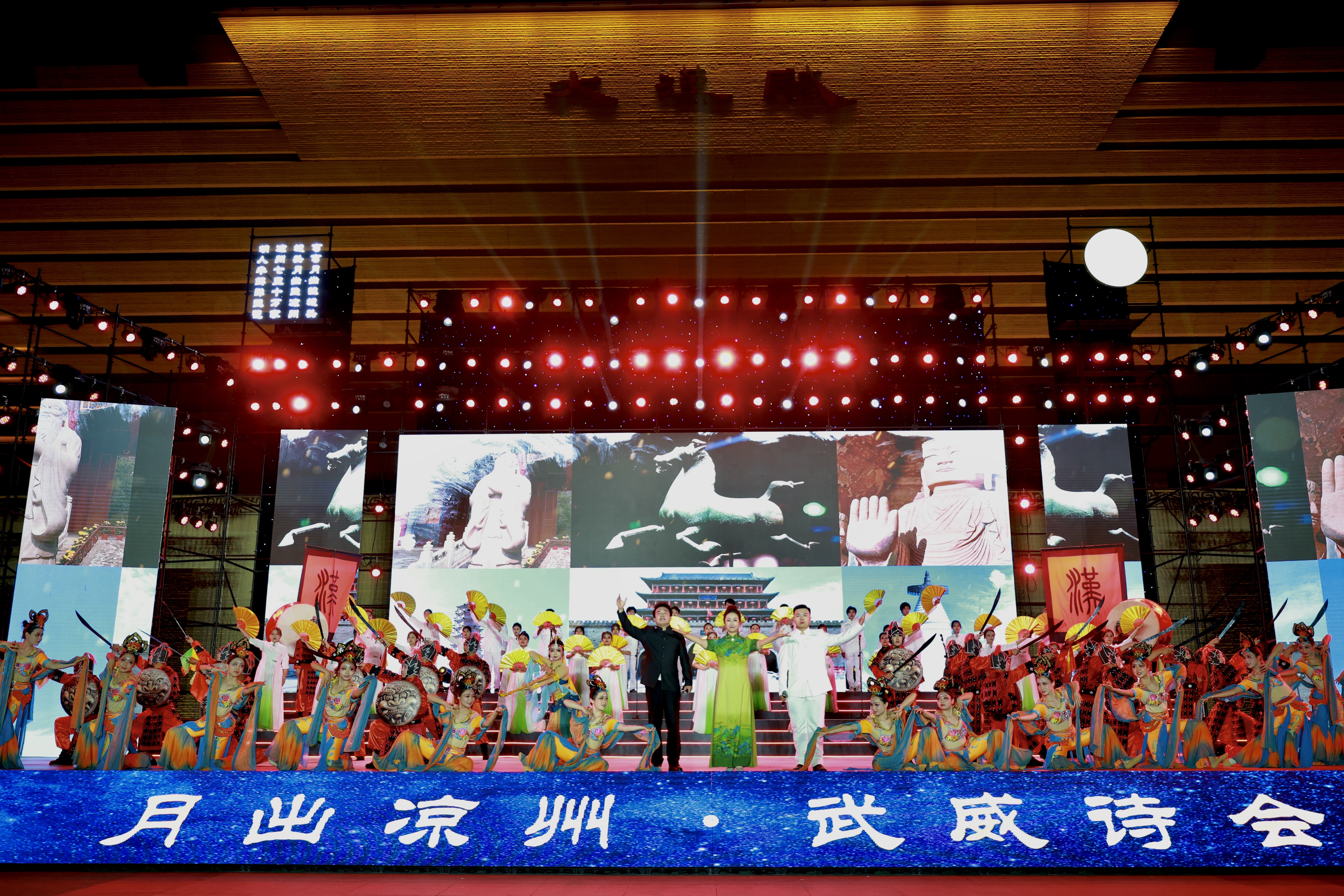 在節(jié)目展演中,我校師生通過詩歌吟誦、歌舞等多元化的藝術(shù)形式,為現(xiàn)場(chǎng)觀眾呈現(xiàn)了一場(chǎng)獨(dú)具武威特色的沉浸式視聽盛宴。這場(chǎng)盛宴不僅讓觀眾沉浸在詩意的芬芳之中,更引領(lǐng)他們穿越時(shí)空的隧道,深刻感受到千年古涼州所散發(fā)出的雄渾壯闊之美。