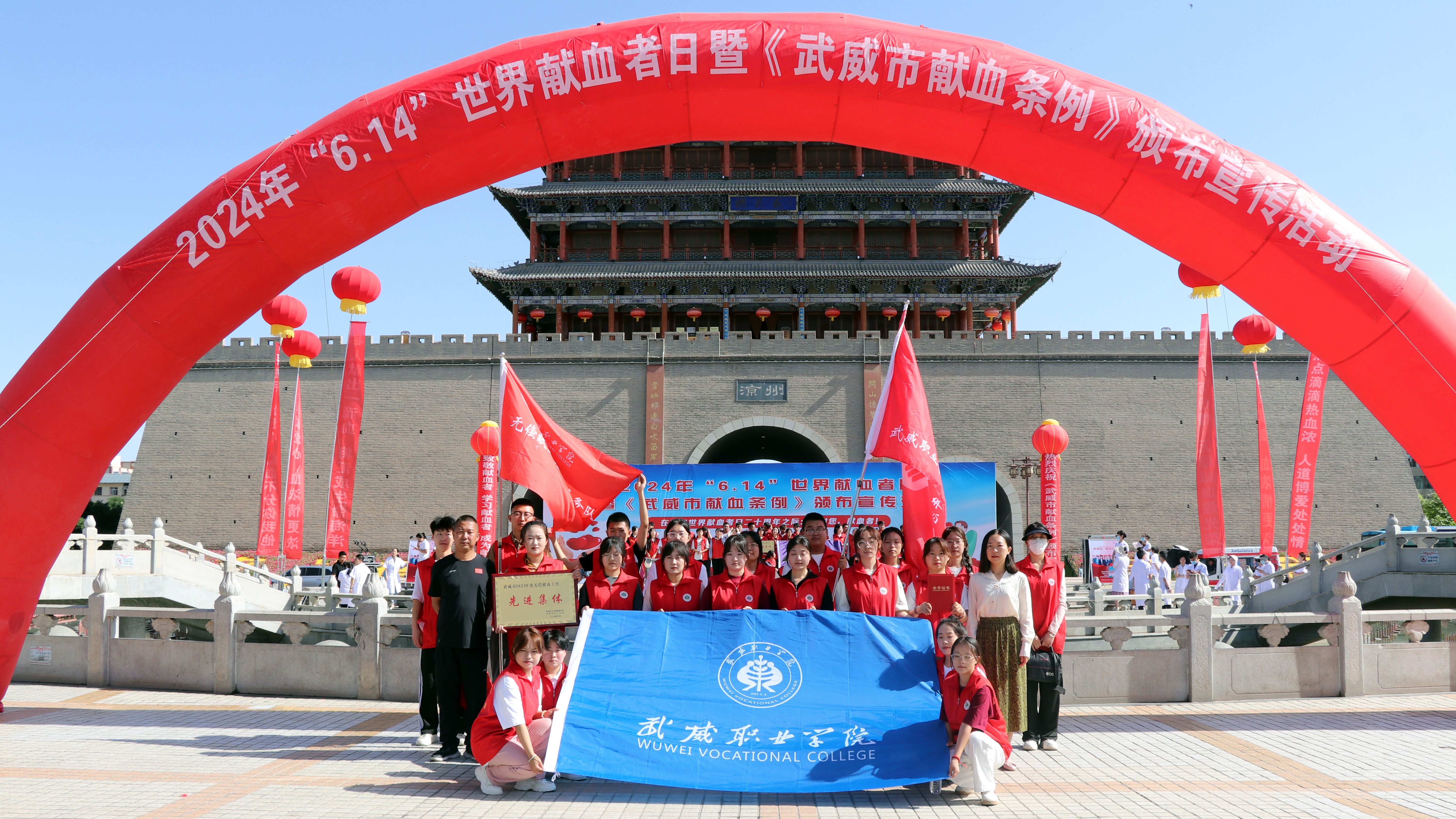 6月14日上午,我市2024年“6·14”世界獻(xiàn)血者日暨《武威市獻(xiàn)血條例》頒布宣傳活動在南城門廣場舉辦。市人大常委會副主任劉光美宣讀《條例》頒布公告,并為全市2023年度無償獻(xiàn)血工作先進(jìn)集體、應(yīng)急獻(xiàn)血先進(jìn)集體和先進(jìn)個人頒發(fā)獎牌和榮譽證書。學(xué)校被評為武威市2023年度無償獻(xiàn)血工作先進(jìn)集體,1名教師被評為先進(jìn)個人。