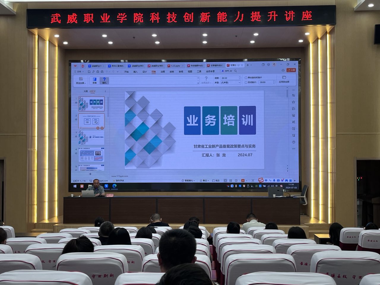 為進(jìn)一步提升學(xué)校教師科研創(chuàng)新能力,掌握科技成果評(píng)價(jià)及新產(chǎn)品備案實(shí)施細(xì)則,7月3日上午,科技處邀請(qǐng)了甘肅省科學(xué)技術(shù)情報(bào)研究所專家蘇海龍和張龍研究員來我校開展科研專題講座。教師們積極踴躍參加講座,認(rèn)真聆聽,收獲頗豐。