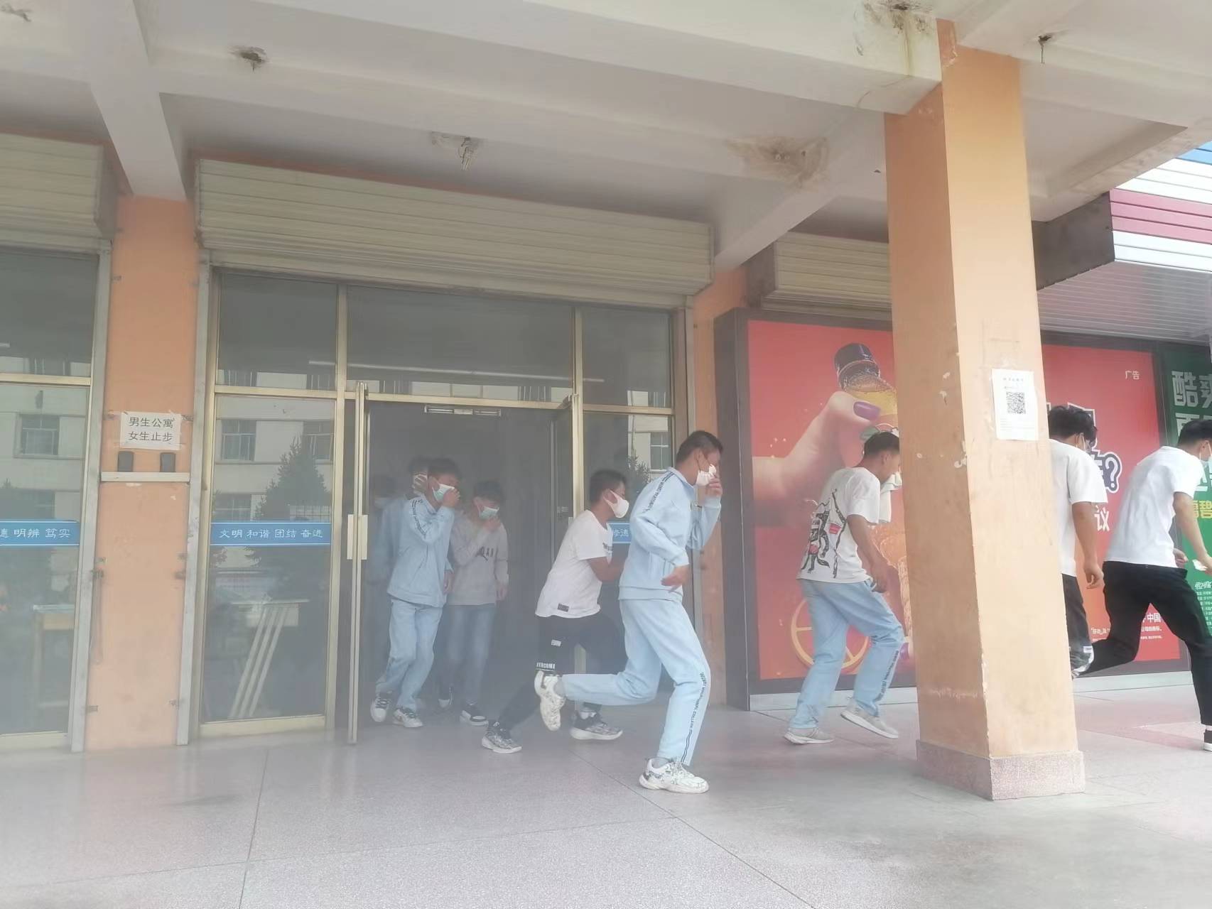 15時20分,疏散演練正式開始。隨著火災警報響起,安全保衛(wèi)工作人員點燃煙餅,在學生公寓樓模擬火災現(xiàn)場,冒出滾滾濃煙,公寓管理人員迅速組織學生有序疏散。在輔導員、班主任的引導下,同學們按照動作要領,用濕毛巾捂住口鼻,俯身彎腰按照安全出口指示牌快速、有序從疏散通道撤離到體育場,整個過程緊張有序,實用性強,達到了預期效果。
