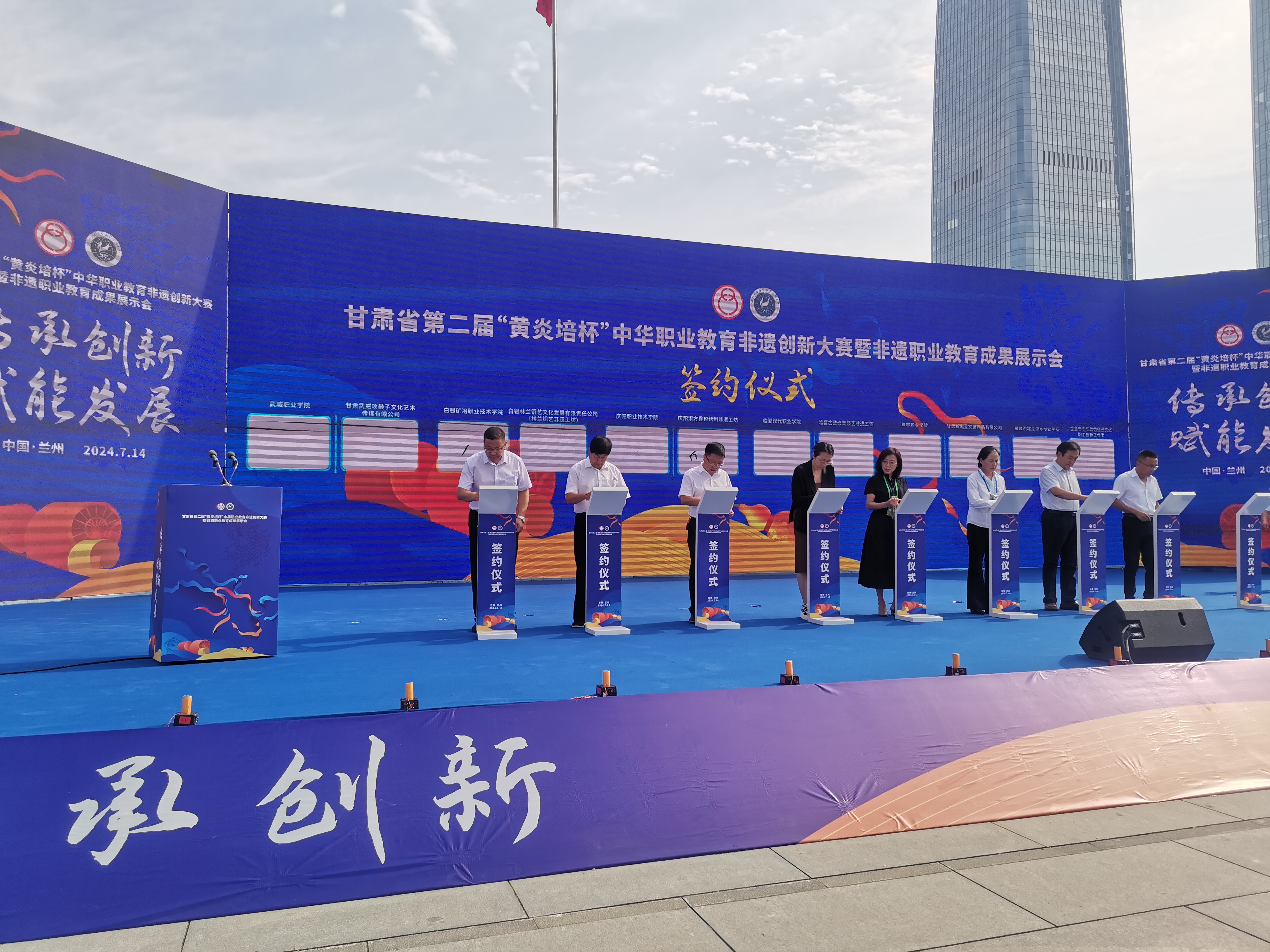 賽會(huì)期間還舉行了非遺進(jìn)職校簽約儀式,學(xué)校黨委委員、紀(jì)委書記、監(jiān)察專員陳曉煜代表學(xué)校與甘肅武威攻鼓子文化藝術(shù)傳媒有限公司簽訂了合作協(xié)議。