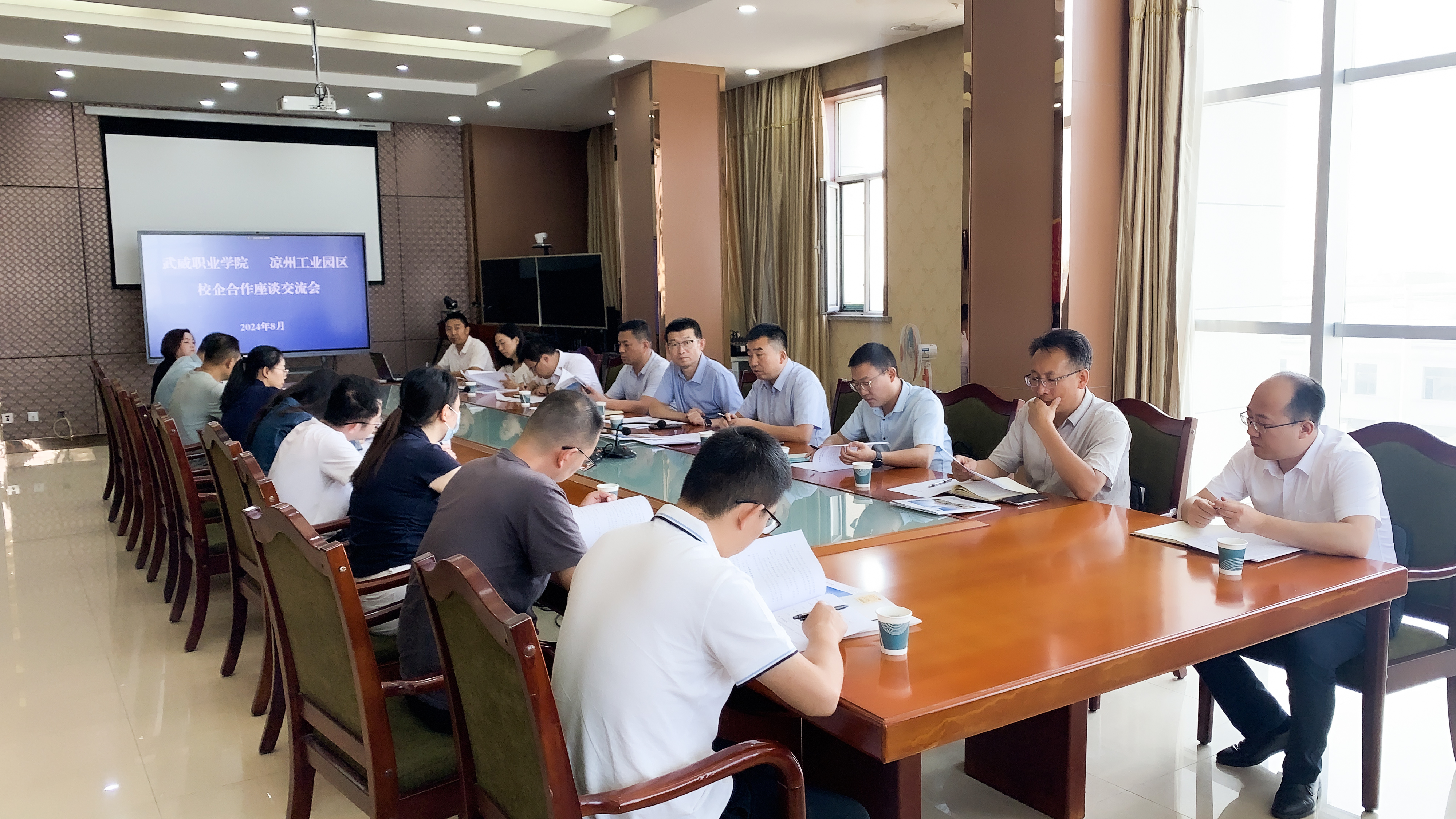8月29日上午,學(xué)校赴涼州工業(yè)園區(qū)開展校企合作洽談。涼州工業(yè)園區(qū)黨工委副書記、紀工委書記楊建先主持座談會,學(xué)校教務(wù)處、招生就業(yè)處、科技處負責(zé)同志和相關(guān)二級學(xué)院負責(zé)同志及園區(qū)內(nèi)16家規(guī)模以上企業(yè)代表參加了座談會。