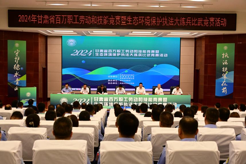 9月3日上午,由甘肅省生態(tài)環(huán)境廳、甘肅省總工會(huì)、甘肅省婦女聯(lián)合會(huì)主辦,武威市生態(tài)環(huán)境局協(xié)辦的甘肅省生態(tài)環(huán)境保護(hù)執(zhí)法大練兵比武競(jìng)賽活動(dòng)在學(xué)校菁英廳開幕,甘肅省生態(tài)環(huán)境廳副廳長(zhǎng)劉文璽、省司法廳副廳長(zhǎng)何雯、省婦聯(lián)一級(jí)巡視員崔海華、武威市人民政府副市長(zhǎng)陳一夫、市生態(tài)局局長(zhǎng)張有恒、學(xué)校黨委書記王宏、校長(zhǎng)、黨委副書記張開禮,省生態(tài)環(huán)境廳、省總工會(huì)、省婦聯(lián)、省司法廳、武威市人民政府有關(guān)領(lǐng)導(dǎo),省生態(tài)環(huán)境廳機(jī)關(guān)處室、直屬單位相關(guān)負(fù)責(zé)同志,武威市生態(tài)環(huán)境局、學(xué)??荚嚺嘤?xùn)中心等單位負(fù)責(zé)同志共100余人參加了開幕式。