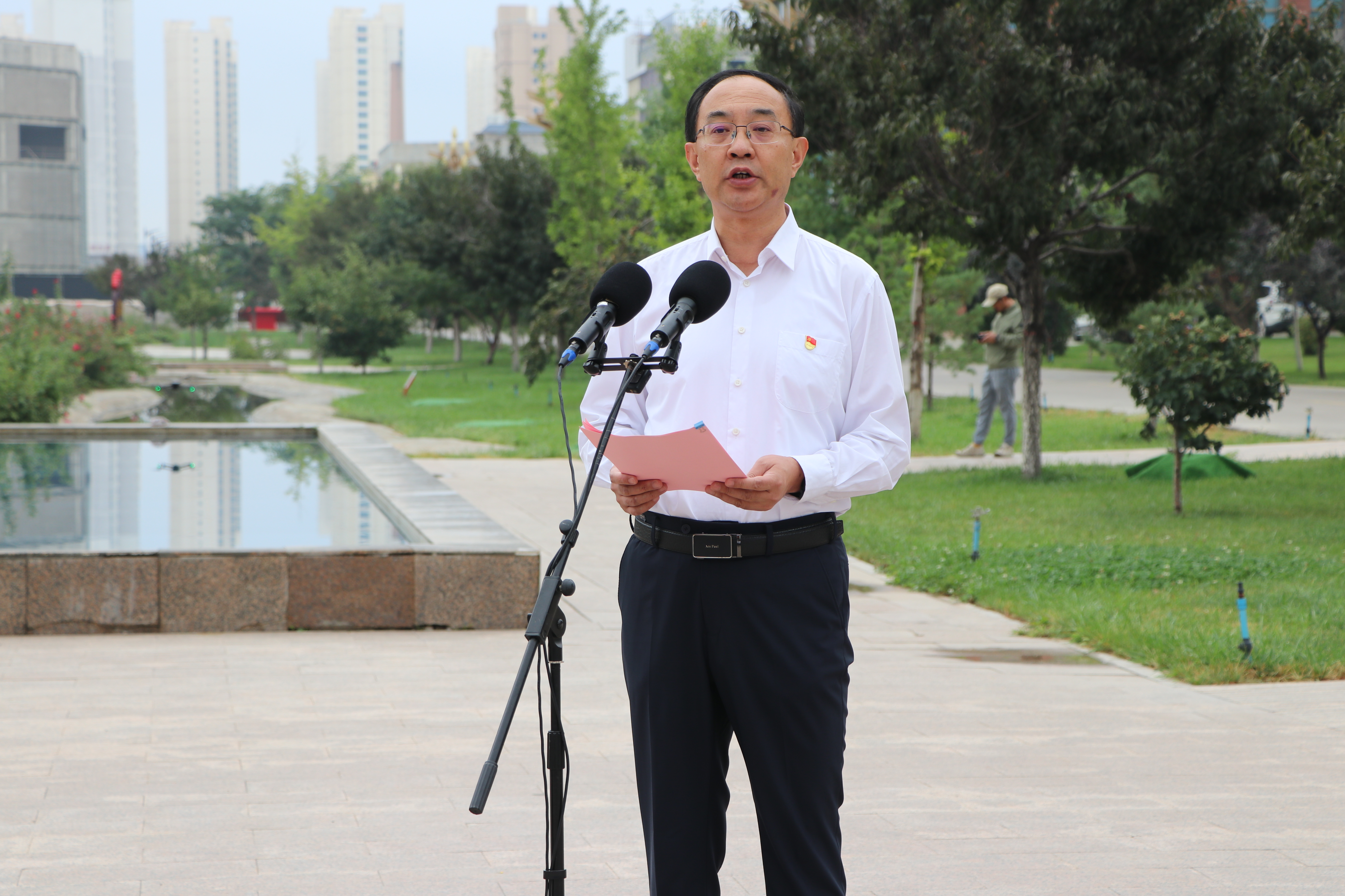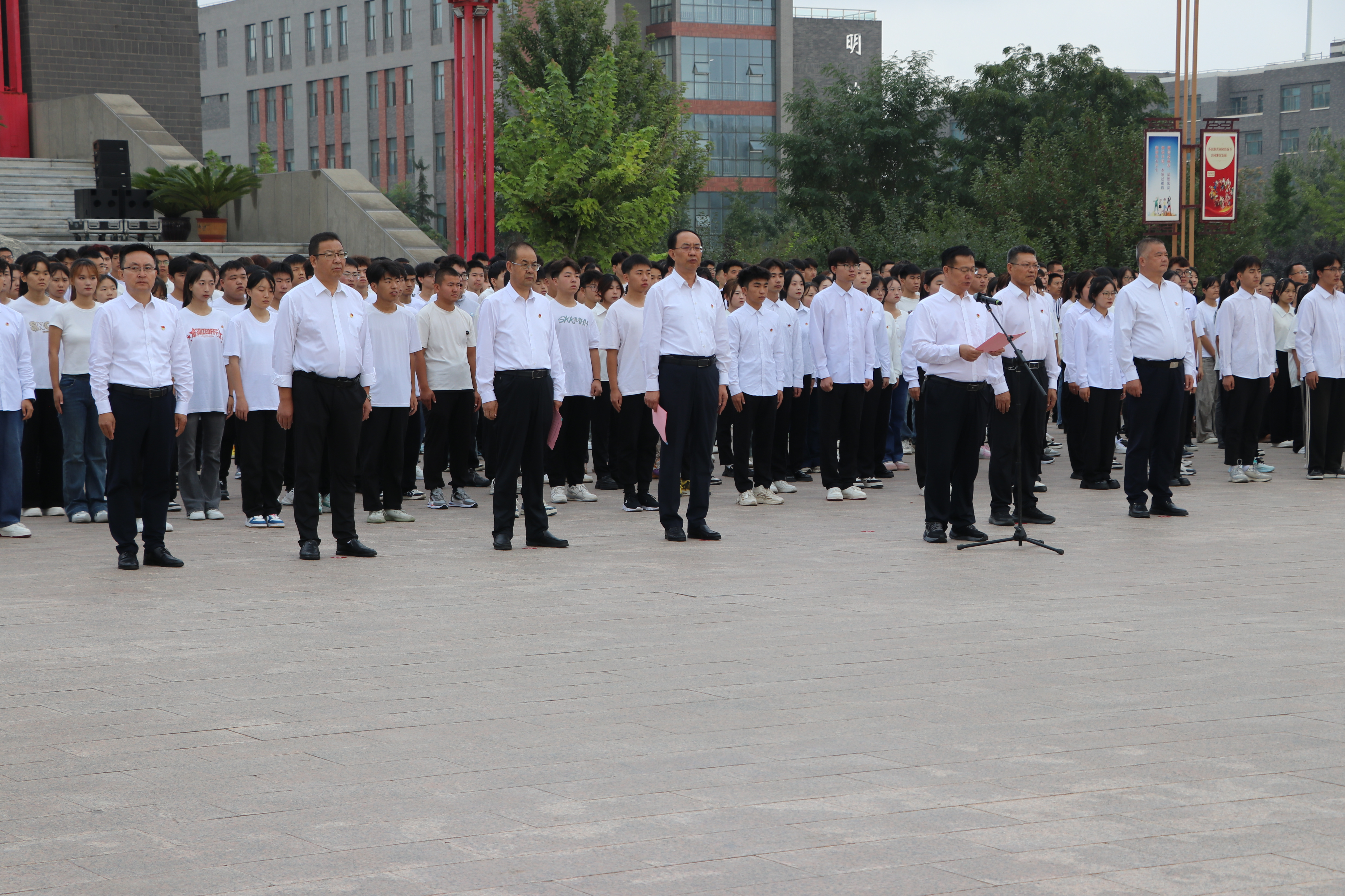9月2日上午,學(xué)校在圖書(shū)館東側(cè)國(guó)旗廣場(chǎng)舉行新學(xué)期升國(guó)旗儀式,黨委書(shū)記王宏向全體師生講授“開(kāi)學(xué)第一課”。學(xué)校領(lǐng)導(dǎo)班子成員、全體中層干部,2024年新入職教師、退伍大學(xué)生士兵代表和各二級(jí)學(xué)院師生代表共480余人參加活動(dòng),黨委副書(shū)記、校長(zhǎng)張開(kāi)禮主持活動(dòng)。
