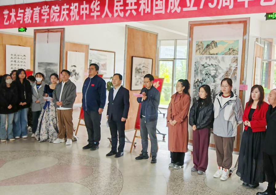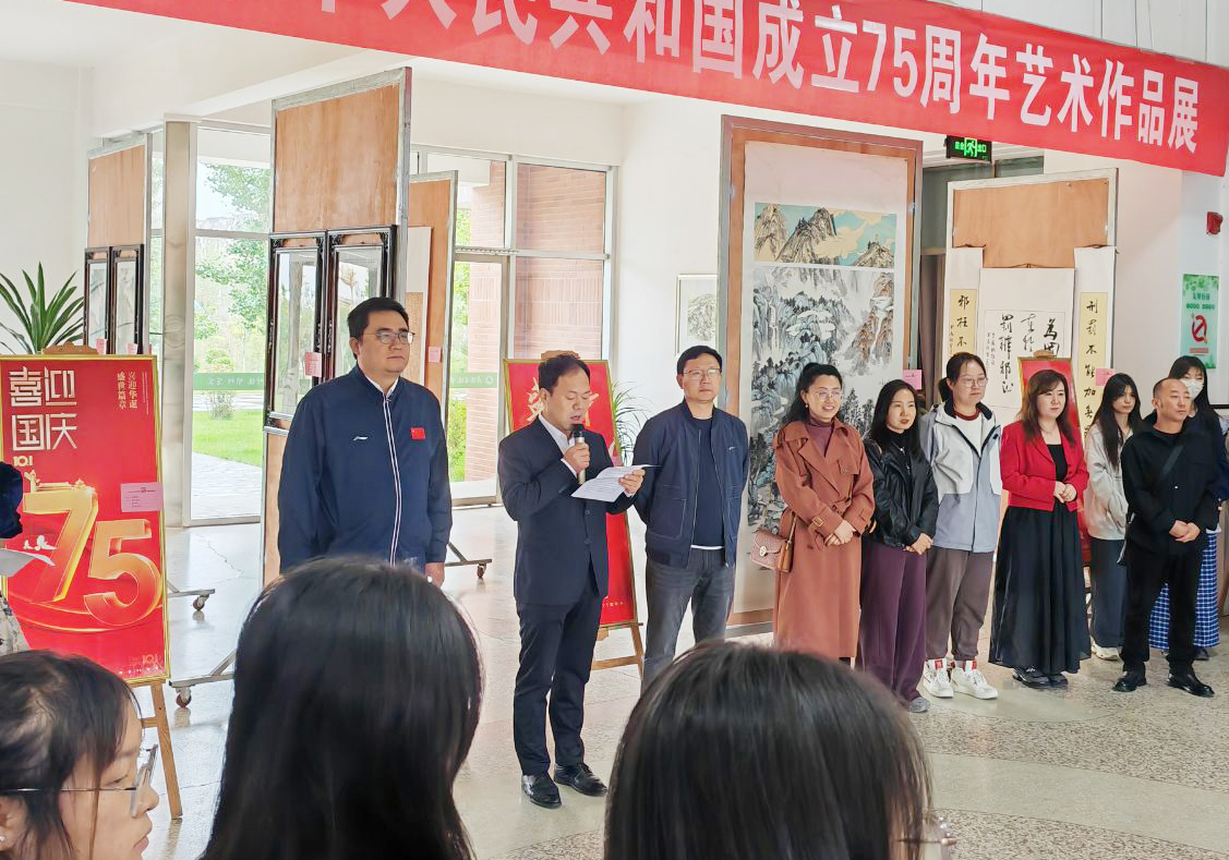 9月30日上午,藝術(shù)與教育學(xué)院慶祝新中國成立75周年藝術(shù)作品展在知新樓開幕。學(xué)院黨總支書記王政、副院長蘆小鵬,美術(shù)教研室全體教師及學(xué)生代表參加了開幕式。