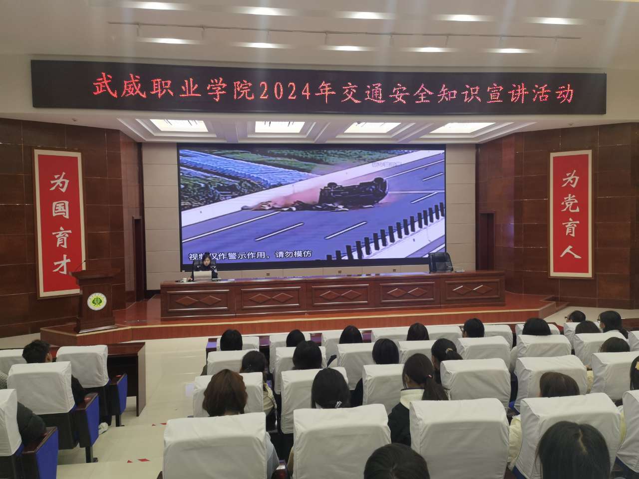 為進(jìn)一步推進(jìn)平安校園建設(shè),增強(qiáng)師生的交通安全意識(shí),預(yù)防和減少交通事故的發(fā)生。10月24日,學(xué)校邀請武威市公安局交警支隊(duì)王穎警官來學(xué)校開展交通安全知識(shí)宣講活動(dòng),為師生們帶來了一堂深刻的交通安全警示課。宣講活動(dòng)由安全保衛(wèi)處處長李欣主持。