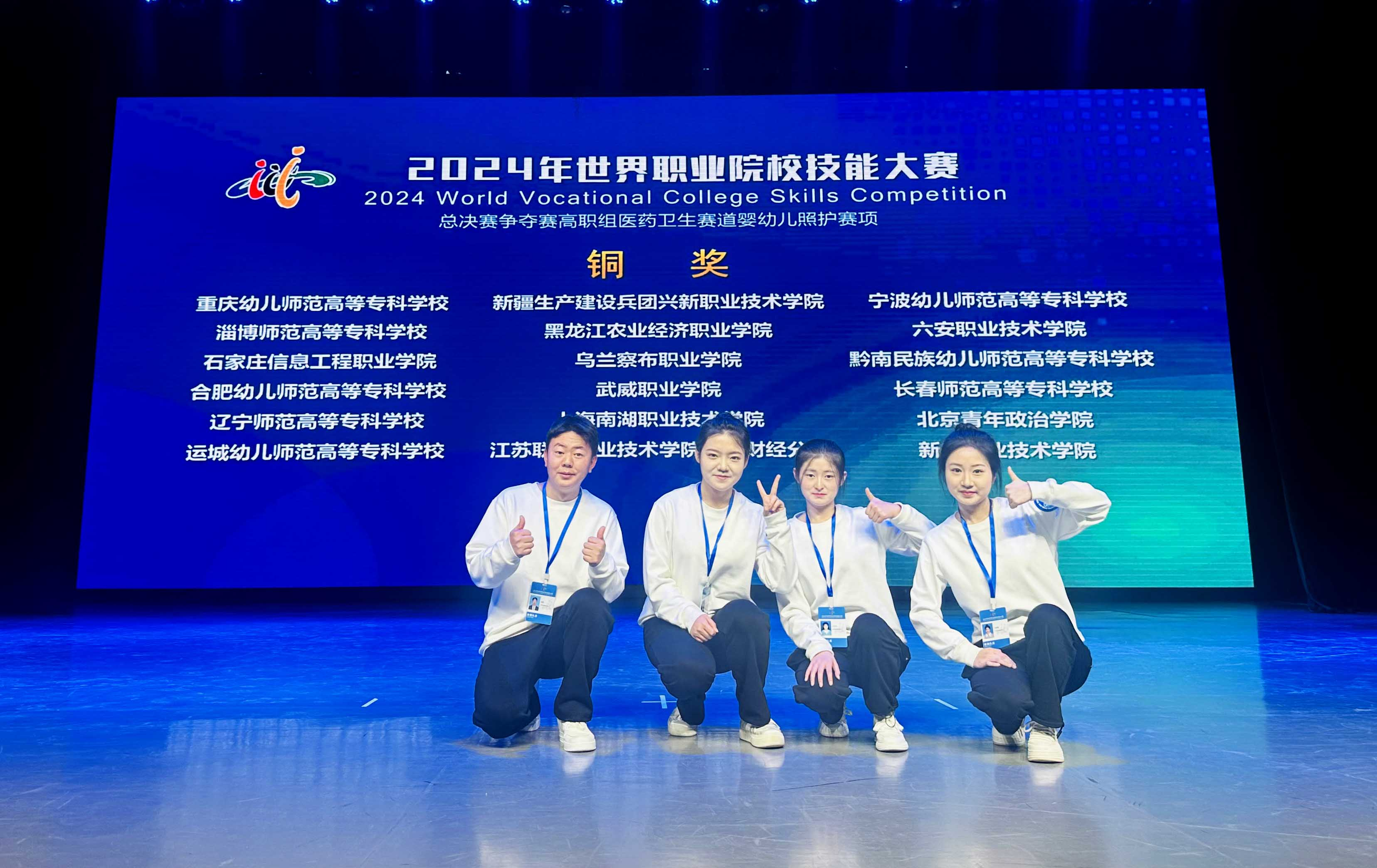 10月26日—10月30日,2024年世界職業(yè)院校技能大賽總決賽爭奪賽高職組醫(yī)藥衛(wèi)生賽道“嬰幼兒照護賽項”在蘭州職業(yè)技術(shù)學院舉行。來自全國30個省、市、自治區(qū)的60支參賽隊伍,共213名選手同臺競技。經(jīng)過2天激烈角逐,由學院賈懷玲、郭濤、王巧云、劉麗霞四位同學組成的參賽團隊獲得銅獎。