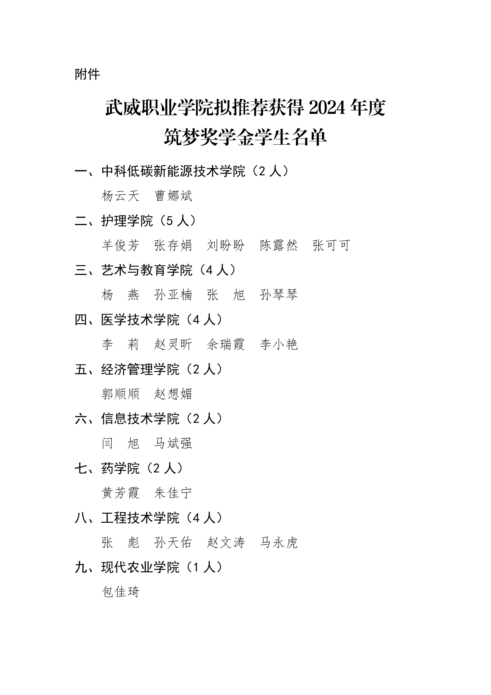 武威職業(yè)學院關(guān)于2024年度筑夢獎學金評選結(jié)果的公示