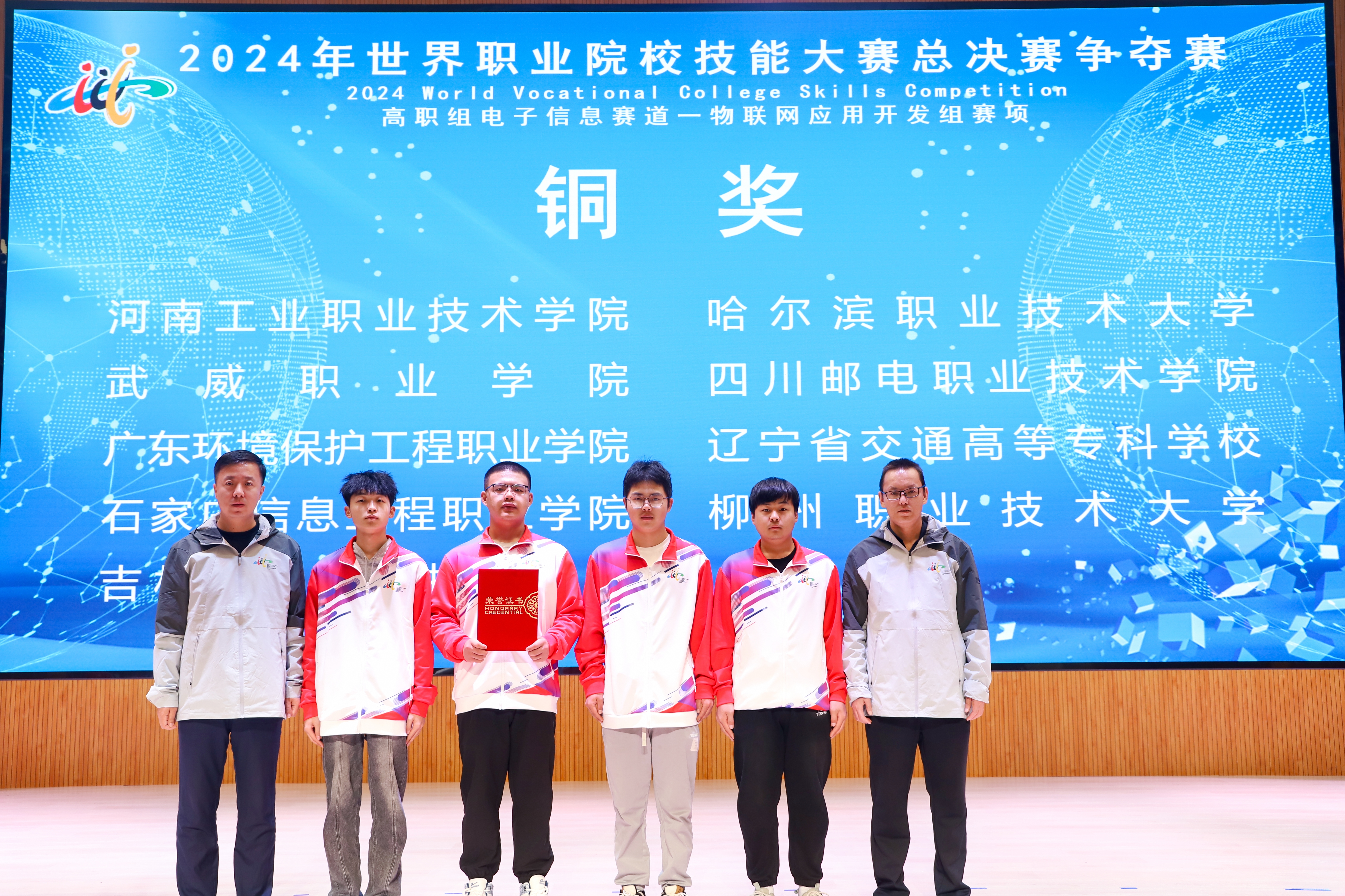 學校在2024年世界職業(yè)院校技能大賽爭奪賽高職組電子信息賽道物聯(lián)網(wǎng)應用開發(fā)賽項中榮獲銅獎