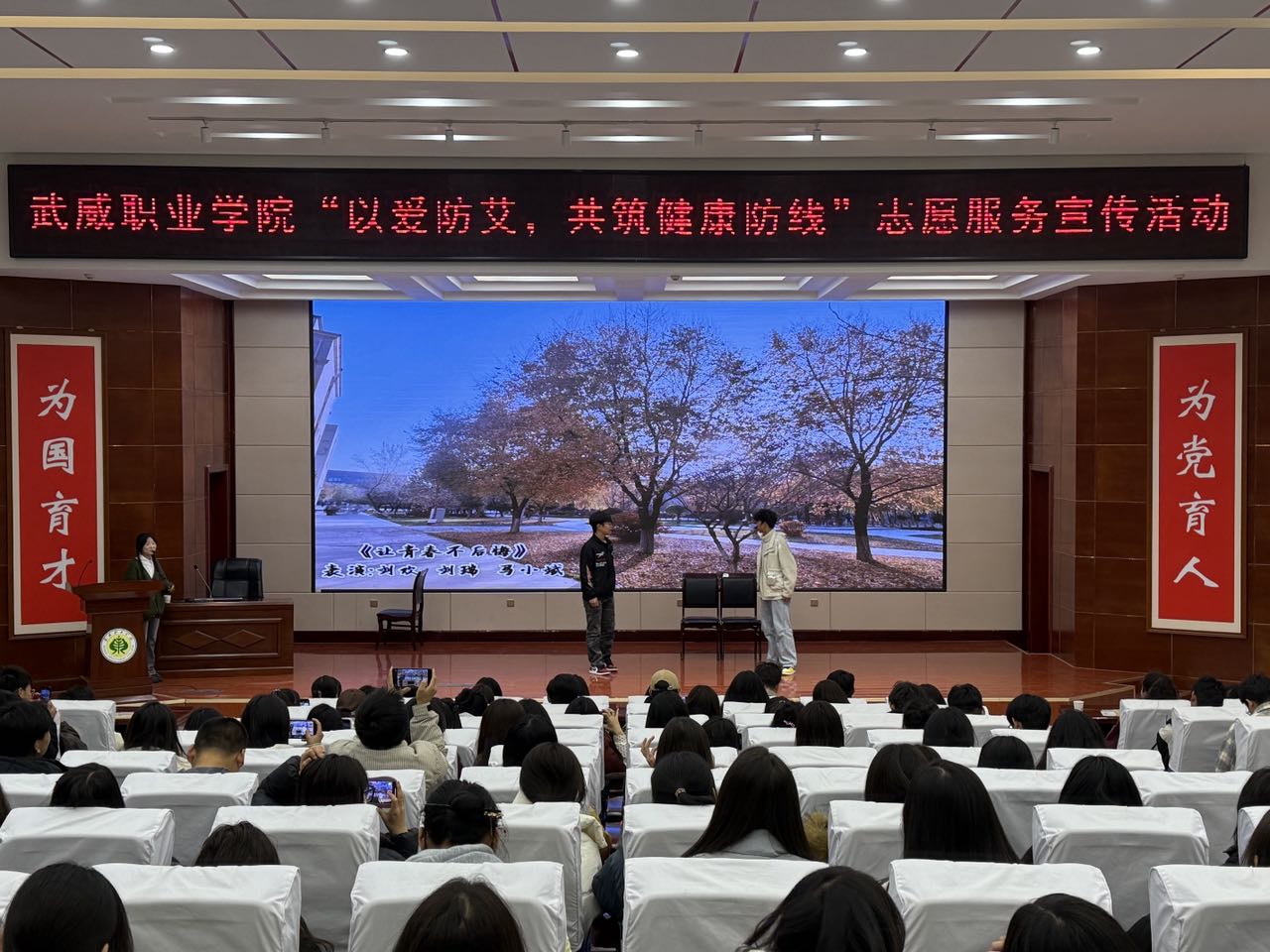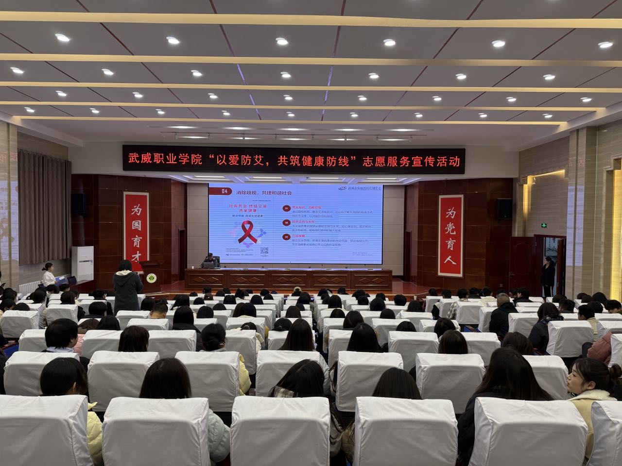 12月1日是第37個“世界艾滋病日”。為普及艾滋病防治知識,進一步增強廣大青年學子的自我防護意識與能力,促進身心健康發(fā)展,12月1日下午,校團委聯(lián)合護理學院邀請武威市疾控中心在學校菁英廳開展主題為“以愛防艾,共筑健康防線”主題宣傳活動,吸引了200余名師生積極參與。