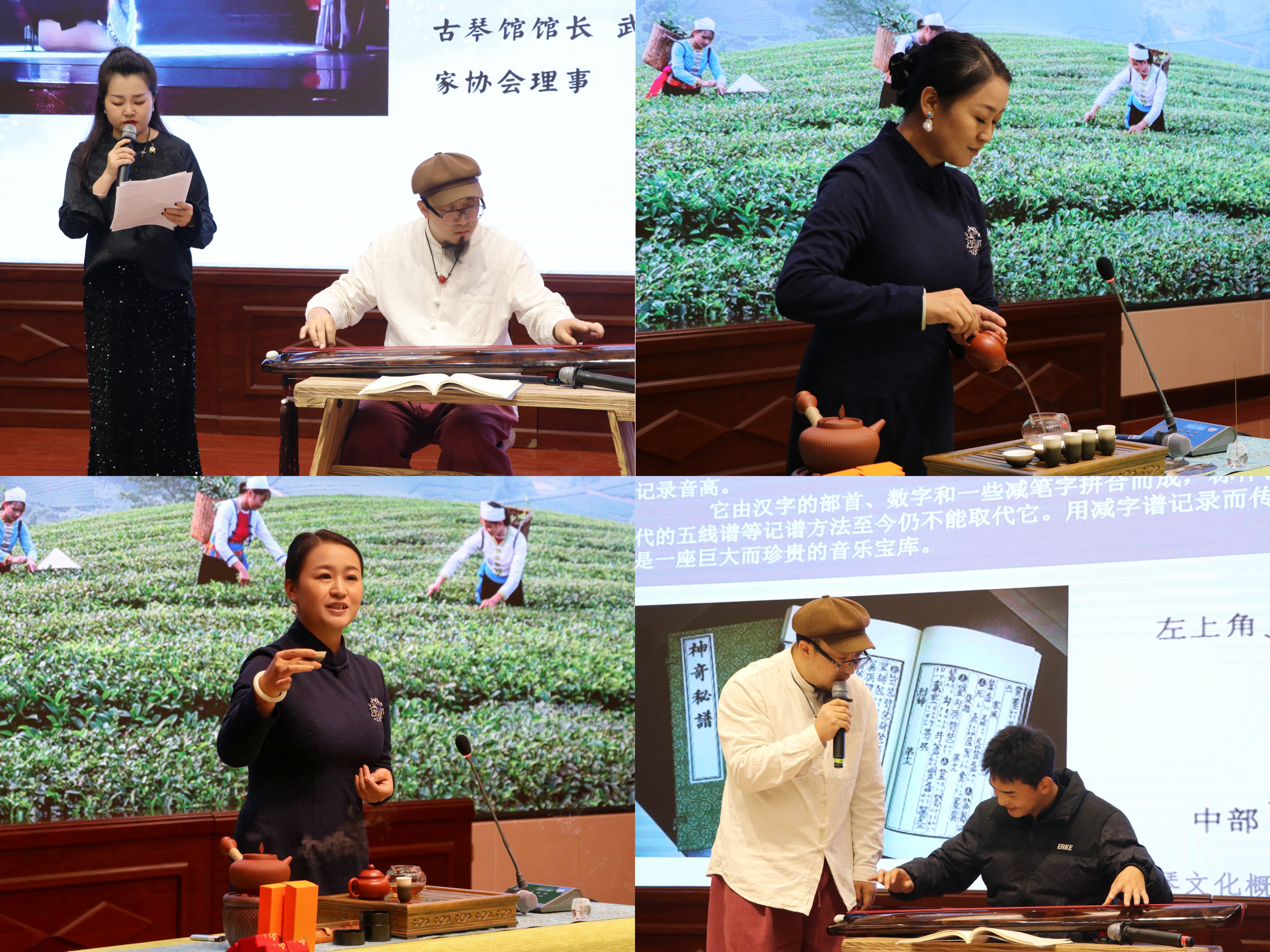 活動(dòng)中,武威市青年音樂(lè)家協(xié)會(huì)聲樂(lè)學(xué)會(huì)會(huì)長(zhǎng)陳菲和古琴協(xié)會(huì)會(huì)長(zhǎng)霍宏昌共同奏唱多首經(jīng)典作品。琴聲悠揚(yáng),旋律動(dòng)人,將現(xiàn)場(chǎng)聽(tīng)眾帶入古代文人雅士的詩(shī)意世界。武威市古琴協(xié)會(huì)茶道學(xué)會(huì)主任白煜為現(xiàn)場(chǎng)觀眾表演“臺(tái)灣21式功夫茶”茶藝,白老師從茶葉的種植、采摘到?jīng)_泡技巧,再到品茶的心境,展示了中國(guó)功夫茶的沖泡流程與品鑒方法,分享了中國(guó)茶文化的歷史與精髓。