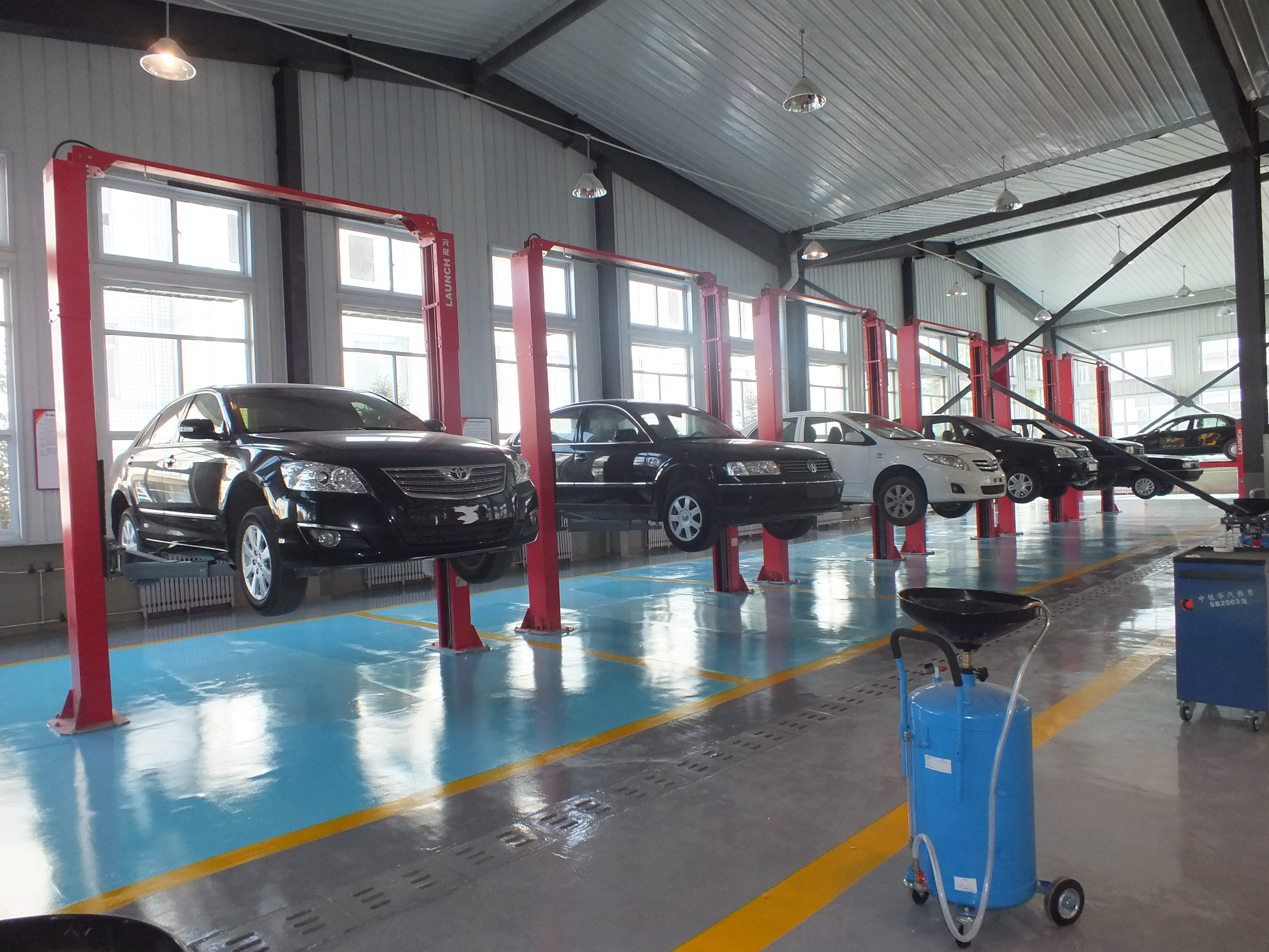 有教學(xué)車(chē)輛14臺(tái),包括大眾、豐田、通用等汽車(chē)行業(yè)知名品牌。雙柱式舉升機(jī)6臺(tái),四柱式舉升機(jī)1臺(tái),用于汽車(chē)維護(hù)、汽車(chē)保養(yǎng)、汽車(chē)修理等教學(xué)生產(chǎn)工作,為學(xué)生的汽車(chē)維修事業(yè)打好基礎(chǔ)。