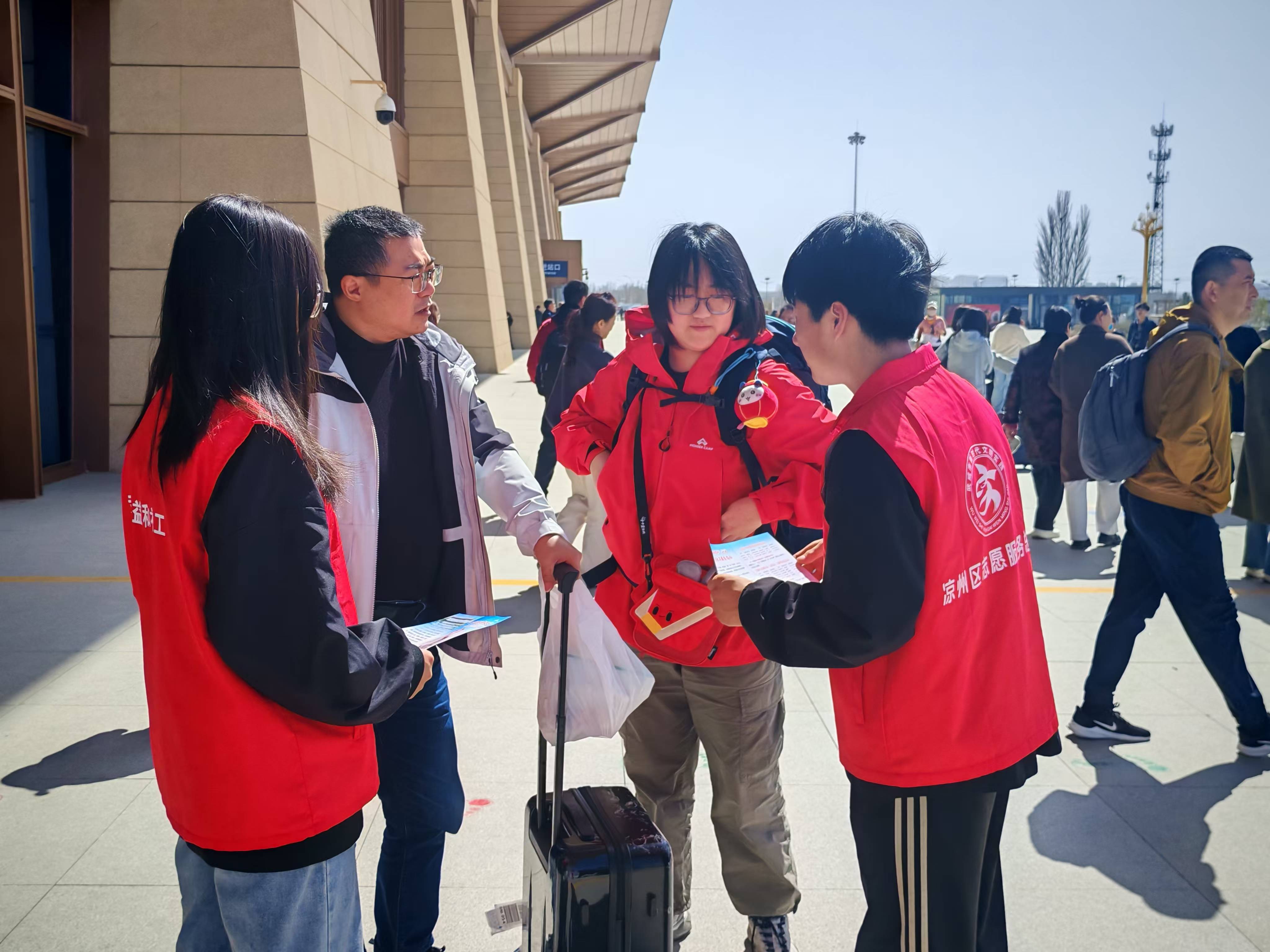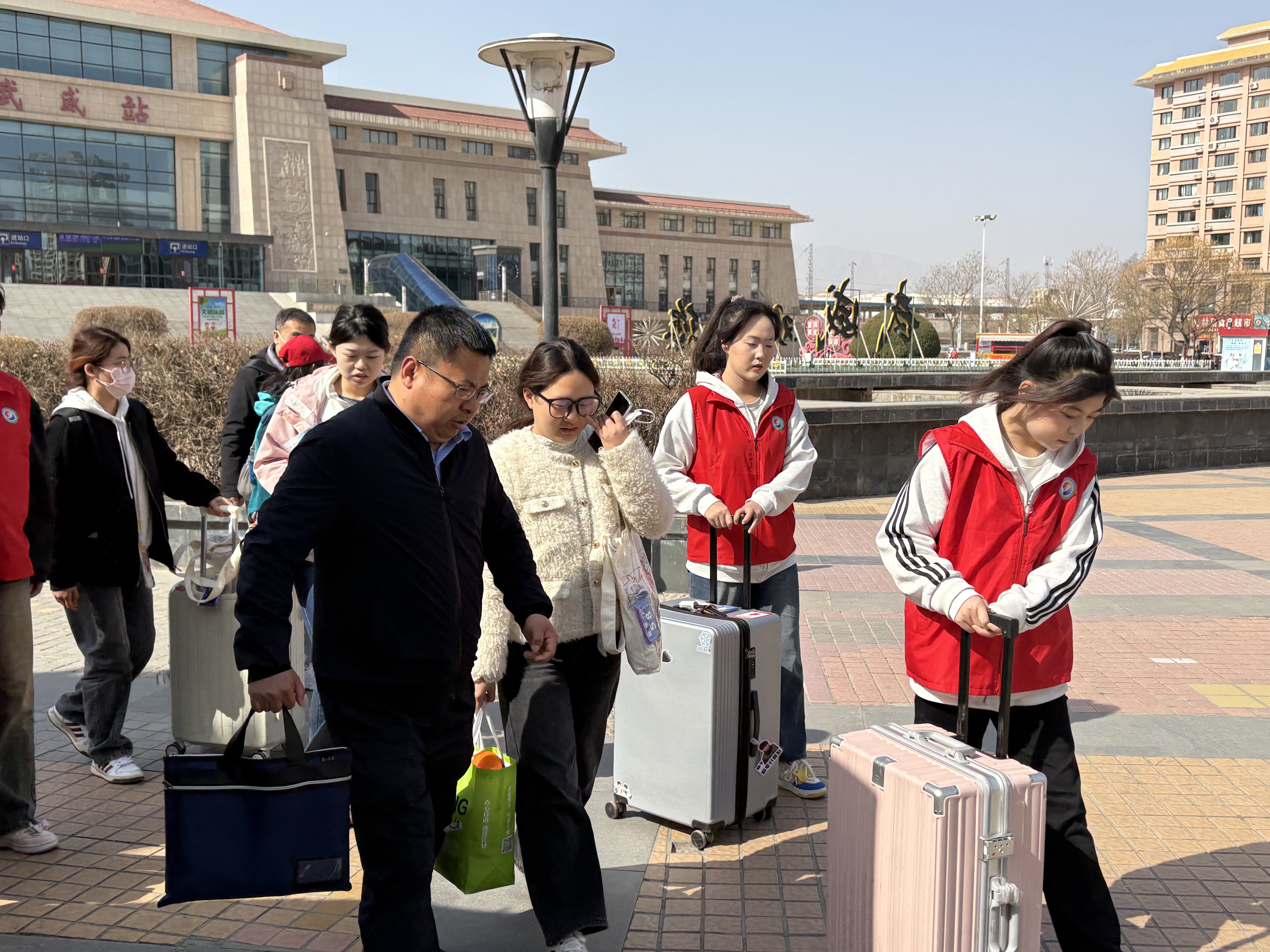 近期,學(xué)校積極響應(yīng)“請(qǐng)到民勤種棵樹(shù)”活動(dòng),組織學(xué)校青年志愿者在武威高鐵站、火車(chē)站、客運(yùn)中心設(shè)立志愿服務(wù)站,為來(lái)自全國(guó)各地的植樹(shù)志愿者提供全方位服務(wù),以實(shí)際行動(dòng)踐行志愿精神,為助力民勤生態(tài)治理貢獻(xiàn)青春力量。