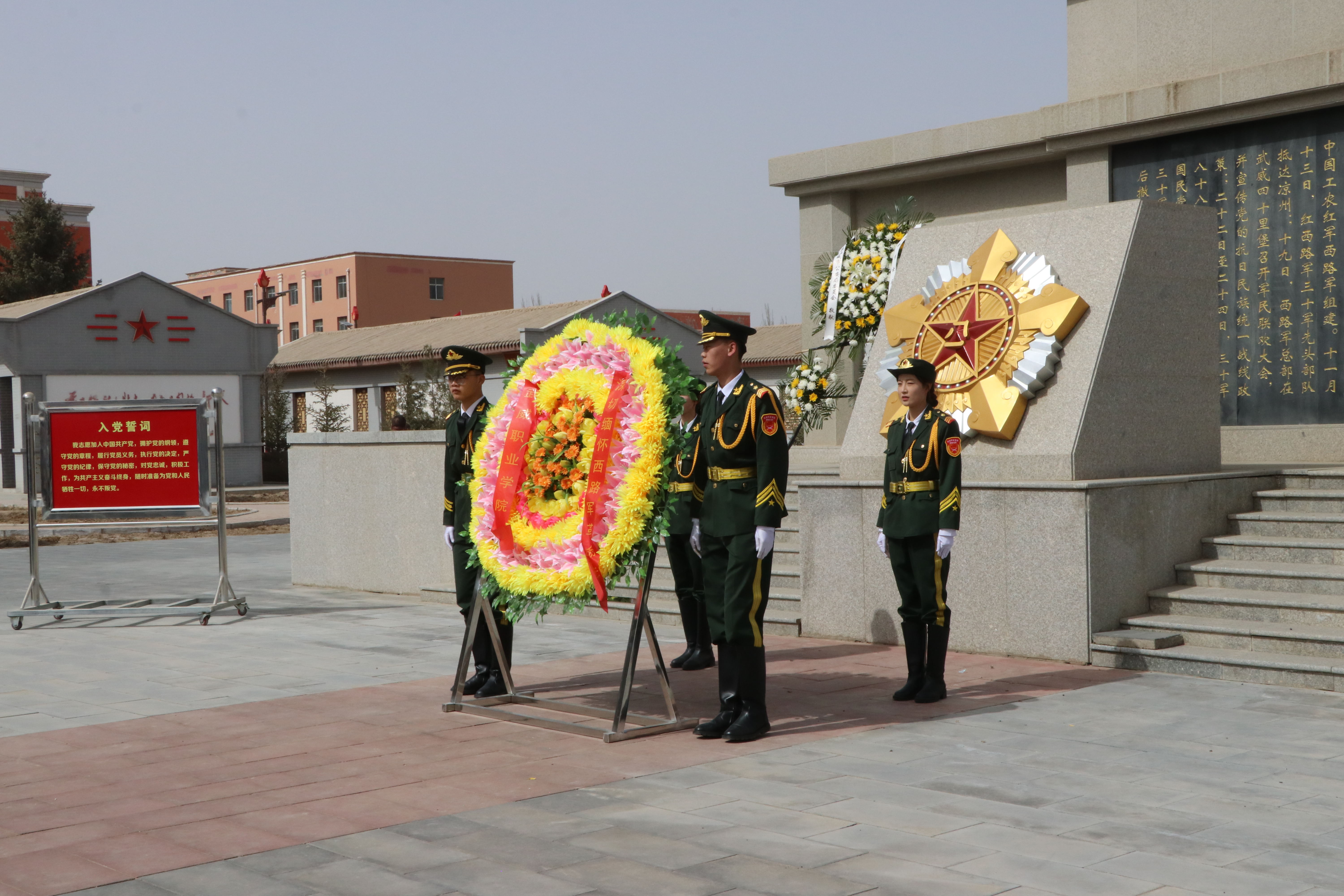 活動當天,同學們莊嚴肅立于烈士紀念碑前,通過敬獻花圈、集體默哀、黨員重溫入黨誓詞等方式寄托哀思。緬懷儀式結束后,在講解員帶領下,大家有序參觀涼州戰(zhàn)役紀念館,透過珍貴的歷史文物、生動的影像資料和震撼的場景復原,深刻感悟革命先烈革命理想高于天的堅定信仰和為有犧牲多壯志的英雄氣概。