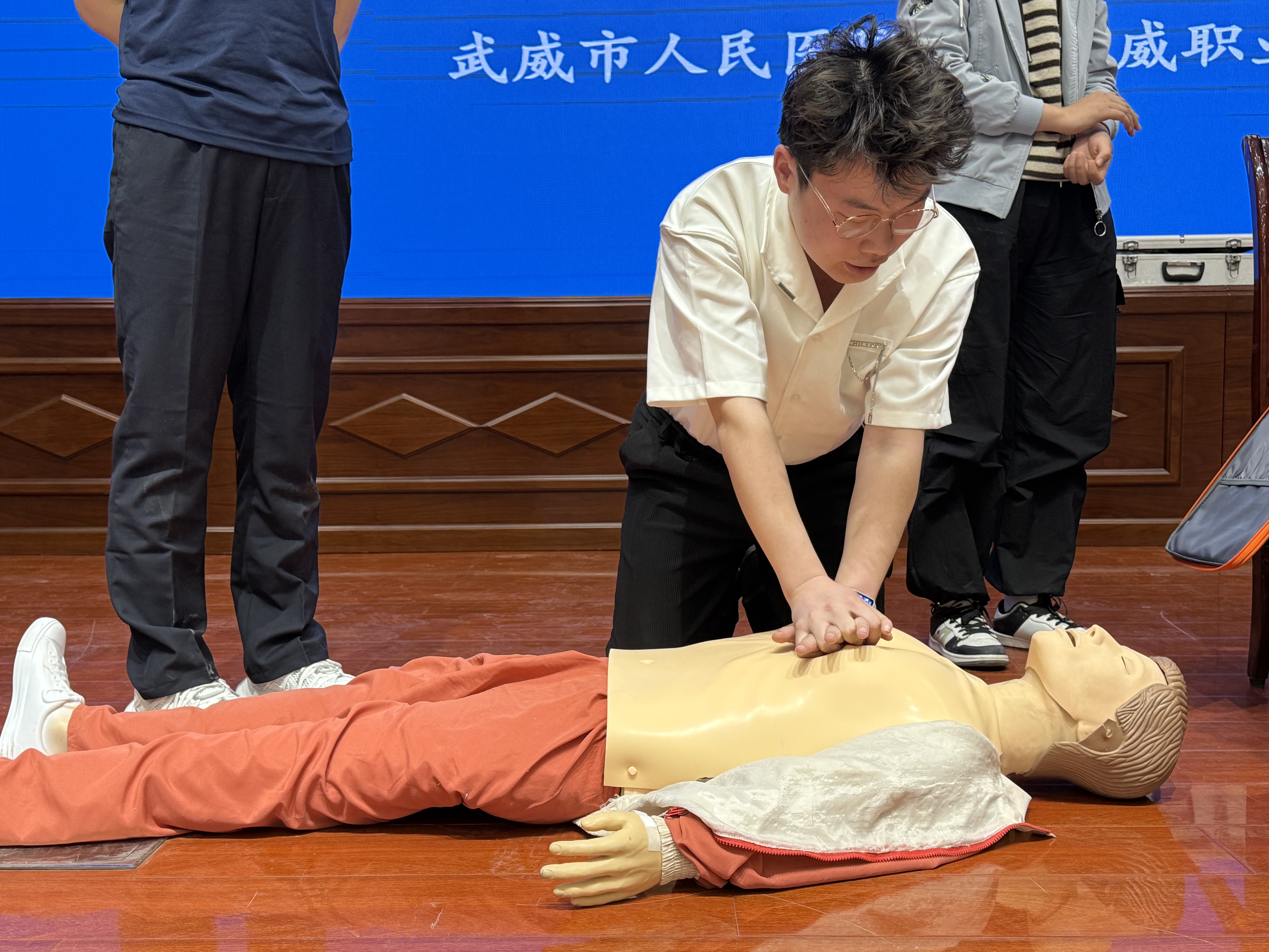 為普及急救知識,提升學生應急救護能力,4月17日下午,校團委聯(lián)合武威市人民醫(yī)院在學校菁英廳舉辦“關愛生命 救在身邊”專題培訓,200余名學生參與學習?;顒油ㄟ^“理論+實操”形式,系統(tǒng)教授學生心肺復蘇、氣道異物急救等技能,助力平安校園建設。