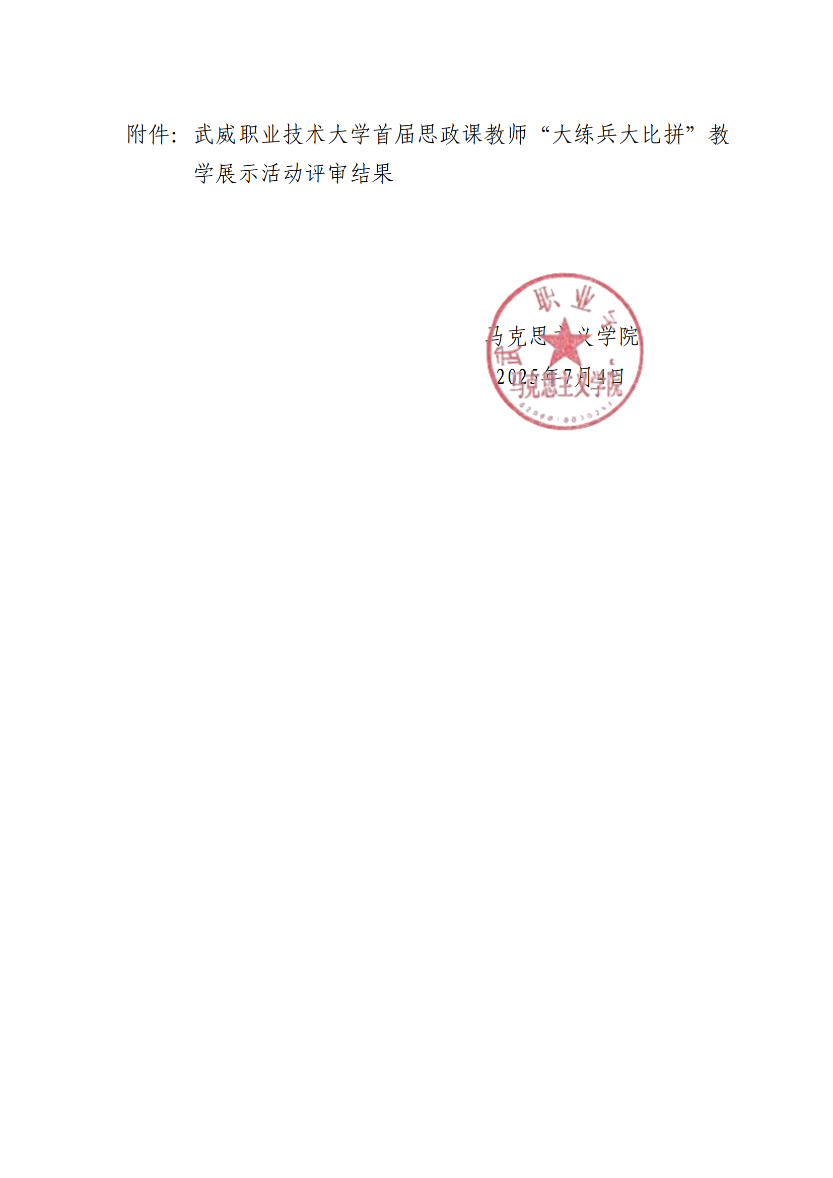 武威職業(yè)技術(shù)大學(xué)首屆思政課教師“大練兵大比拼”教學(xué)展示活動評審結(jié)果的公示