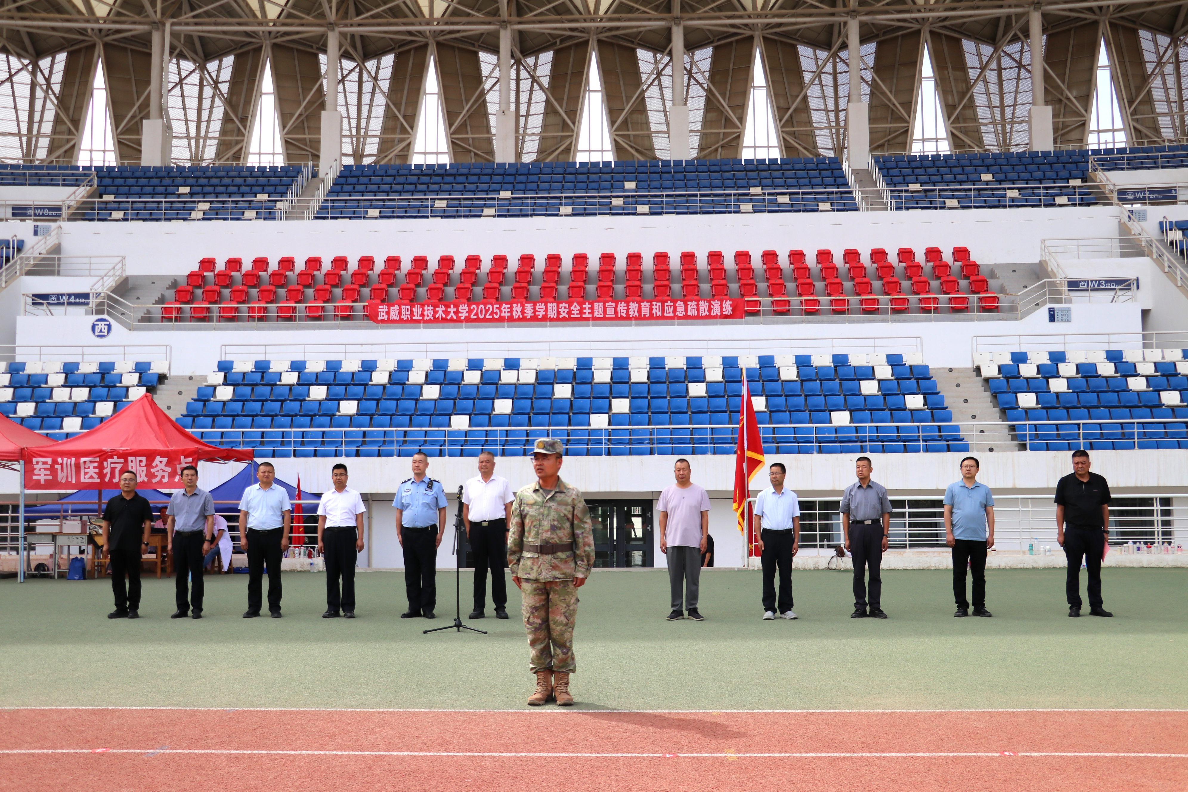 9月10日,學(xué)校舉行2025年秋季學(xué)期安全主題集中宣傳教育和應(yīng)急疏散暨滅火演練活動,學(xué)校新進教師,食堂、鍋爐房、實驗實訓(xùn)室等重點崗位管理人員,2025級全體學(xué)生共5000余人參加演練。學(xué)校黨委委員、副校長王守云,軍訓(xùn)教官,武威市公安局相關(guān)部門同志,各學(xué)院、各部門負責(zé)人現(xiàn)場觀摩演練。演練活動由安全保衛(wèi)處處長李欣主持。