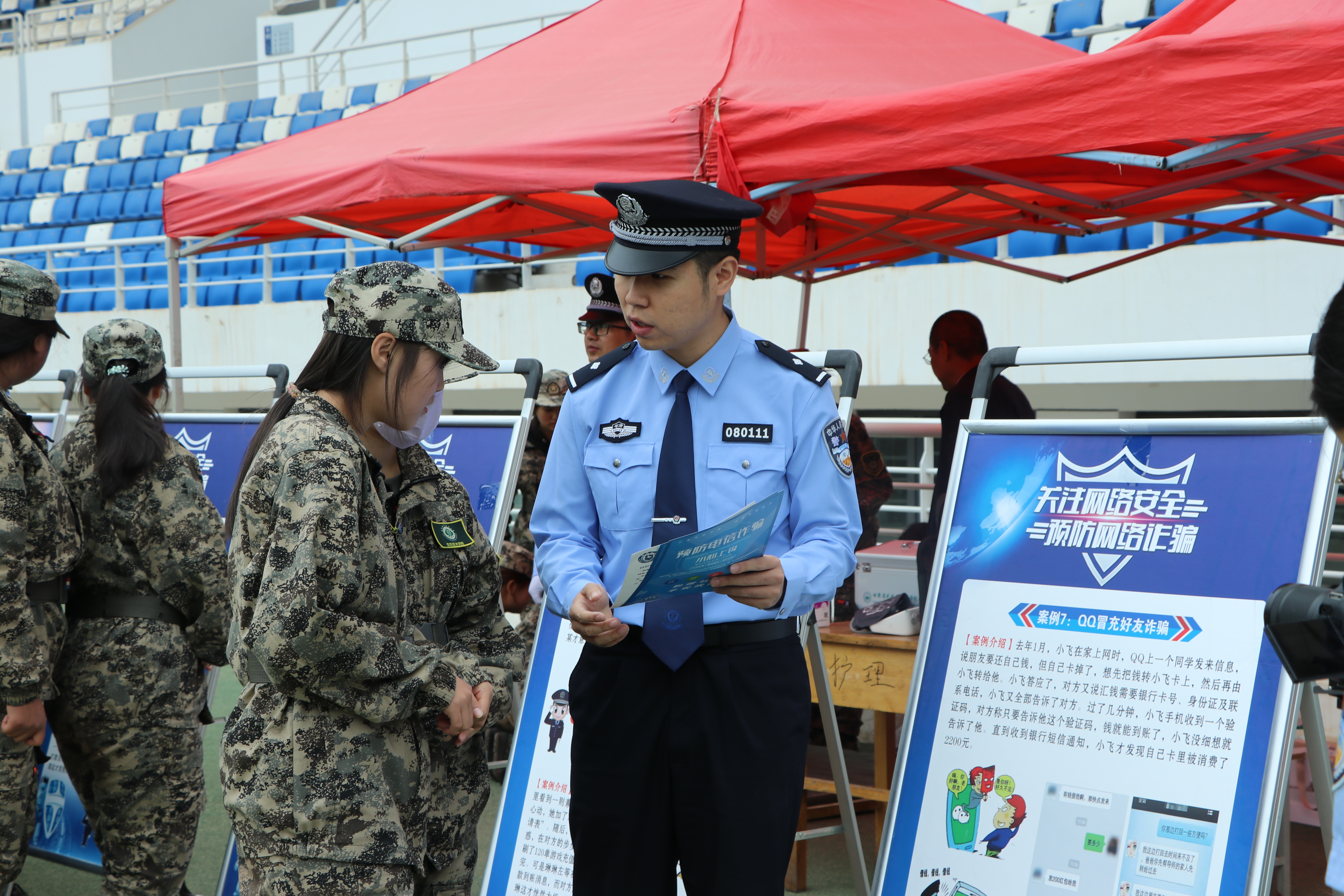 活動現(xiàn)場設置了“網(wǎng)絡安全主題展”,通過圖文展板、宣傳彩頁等形式,集中展示《網(wǎng)絡安全法》《數(shù)據(jù)安全法》《個人信息保護法》等法律法規(guī),以及AI換臉詐騙、網(wǎng)絡謠言治理、校園貸陷阱等熱點內(nèi)容。市公安局民警與學校網(wǎng)絡安全與信息技術中心工作人員現(xiàn)場發(fā)放《大學生防騙手冊》《個人信息保護小貼士》等宣傳資料,并耐心講解宣傳資料中的重點內(nèi)容。