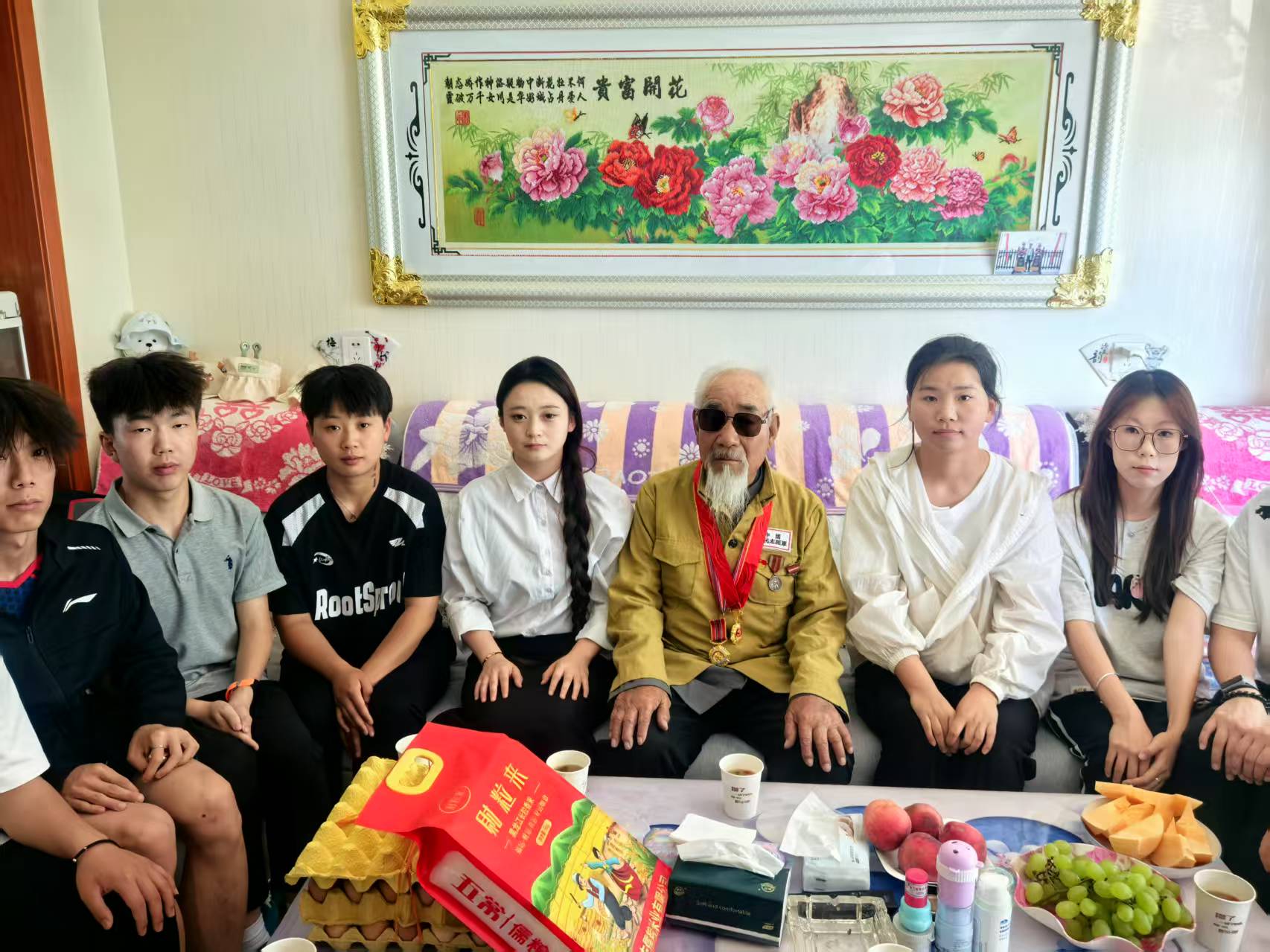 現(xiàn)居住于康寧新村八組、已93歲高齡的張克錄爺爺是參加過抗美援朝的退役老英雄。9月25日,堅持駐村4年的靳東生老師與學(xué)?!八{天愛心協(xié)會”指導(dǎo)教師、青年大學(xué)生,帶著學(xué)校的牽掛、問候與崇敬,一起到張克錄爺爺家中,為老人送上關(guān)愛祝福,開展了一場“聆聽英雄故事、傳承紅色基因”的特別走訪、慰問活動。張克錄爺爺精神矍鑠,身著掛有勛章的志愿軍軍裝,向師生們講述當(dāng)年志愿軍戰(zhàn)士冒著凜冽寒風(fēng)跨過鴨綠江,爬冰臥雪英勇戰(zhàn)斗的生動事跡;驚心動魄的戰(zhàn)斗故事,在老人樸實無華的語言中顯得格外感人,在場師生仿佛穿越時空,親眼目睹了志愿軍戰(zhàn)士們用血肉之軀筑起的鋼鐵長城;說到動情處,老人和師生們的眼眶已經(jīng)濕潤,師生心靈受到了深刻洗禮、愛國情懷得到了高度升華。