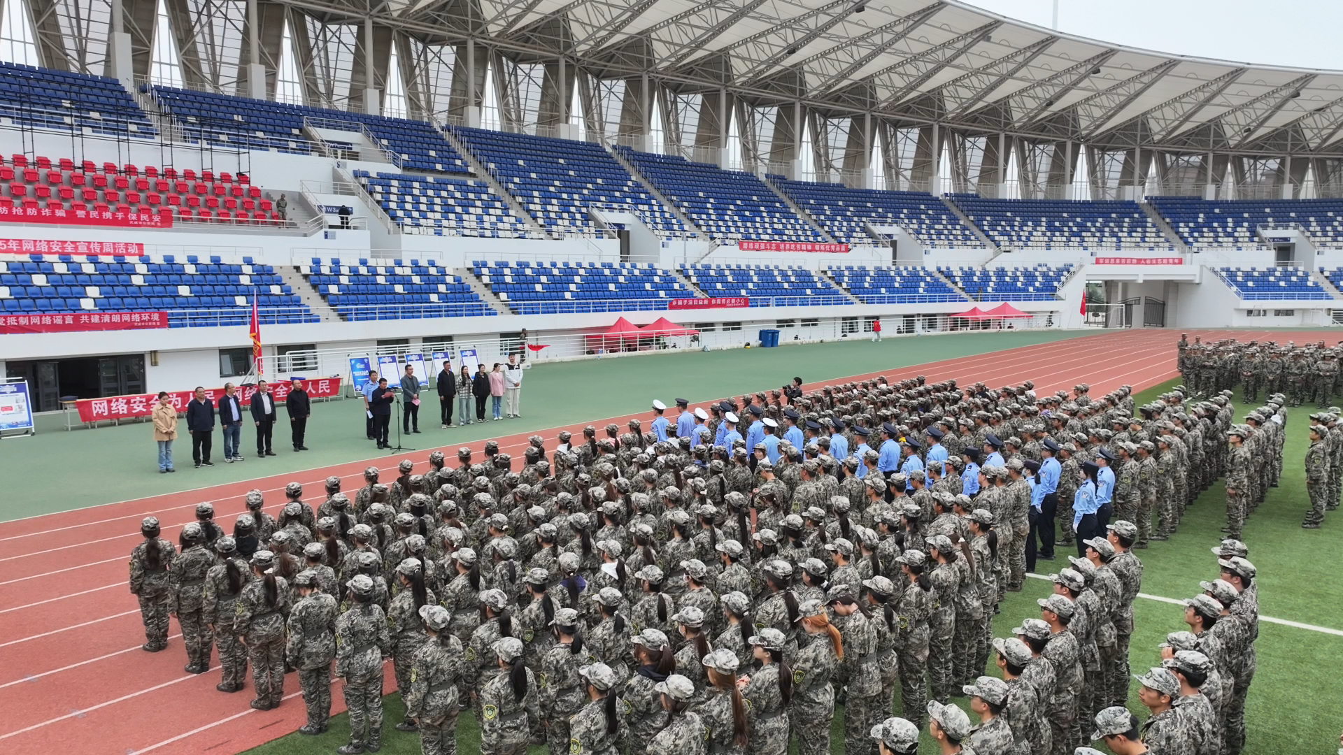9月18日,武威市公安局網(wǎng)安支隊(duì)聯(lián)合武威職業(yè)技術(shù)大學(xué)在學(xué)校體育場(chǎng)舉辦2025年網(wǎng)絡(luò)安全宣傳周集中宣傳活動(dòng)。信息技術(shù)學(xué)院組織全體師生參加了此次活動(dòng),活動(dòng)以“網(wǎng)絡(luò)安全為人民,網(wǎng)絡(luò)安全靠人民——以高水平安全守護(hù)高質(zhì)量發(fā)展”為主題,旨在進(jìn)一步提升廣大師生的網(wǎng)絡(luò)安全意識(shí)和防護(hù)技能,營(yíng)造清朗有序的校園網(wǎng)絡(luò)環(huán)境。武威市公安局網(wǎng)安支隊(duì)支隊(duì)長(zhǎng)張建軍,學(xué)校網(wǎng)絡(luò)安全與信息技術(shù)中心工作人員,各學(xué)院輔導(dǎo)員現(xiàn)場(chǎng)參加活動(dòng)。