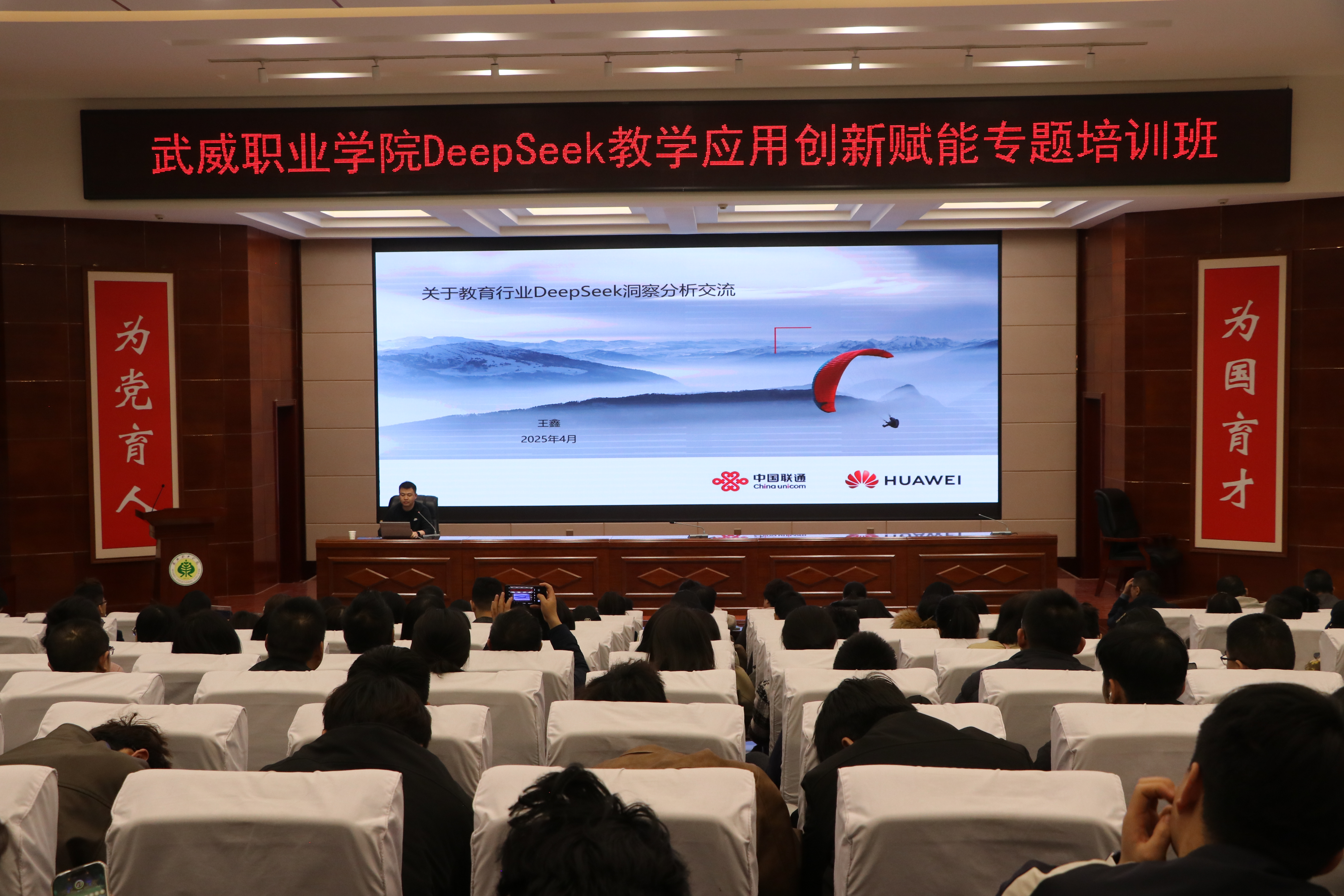 為深入探討DeepSeek技術(shù)的應(yīng)用,助力學(xué)校師生運用AI工具進行教學(xué)實踐、智慧課程建設(shè)與科學(xué)研究工作,為教學(xué)改革與教學(xué)創(chuàng)新實踐筑基賦能。4月3日,學(xué)校邀請聯(lián)通數(shù)據(jù)智能有限公司教育行業(yè)解決方案專家包紅梅和華為技術(shù)有限公司智算產(chǎn)業(yè)AI架構(gòu)師王鑫,舉辦了“DeepSeek教學(xué)應(yīng)用創(chuàng)新賦能”專題講座。講座由網(wǎng)絡(luò)安全與信息技術(shù)中心負(fù)責(zé)人史子新主持,學(xué)校各部門、二級學(xué)院教師代表,信息技術(shù)學(xué)院學(xué)生代表共計220人參加。