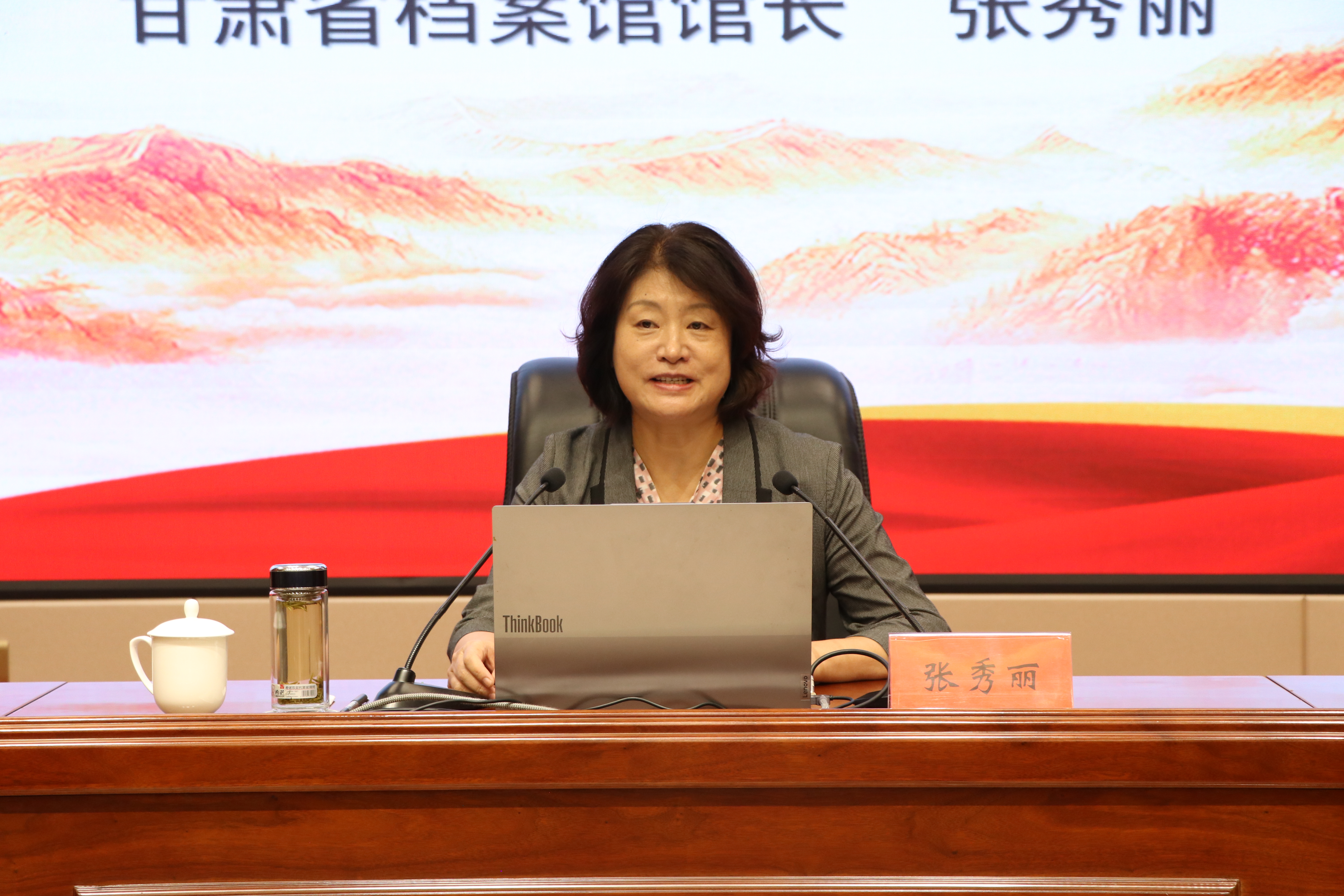 張秀麗結(jié)合自身從事檔案管理和文化研究的豐富經(jīng)驗(yàn),從檔案“存史、資政、育人”根本任務(wù)出發(fā),通過大量珍貴檔案文獻(xiàn)和歷史案例,系統(tǒng)闡述了檔案在記錄民族苦難輝煌、服務(wù)當(dāng)代治國理政、培育時(shí)代新人中的重要作用。報(bào)告中,她以館藏漢代簡牘、革命烈士叢德滋00001號(hào)烈屬證、民勤治沙檔案、甘肅地震檔案等一批具有歷史代表性和地域特色的檔案為載體,帶領(lǐng)師生穿越時(shí)空,感受中華民族生生不息的精神力量,深刻解讀“勿忘昨天的苦難輝煌,無愧今天的使命擔(dān)當(dāng),不負(fù)明天的偉大夢想”的時(shí)代內(nèi)涵。