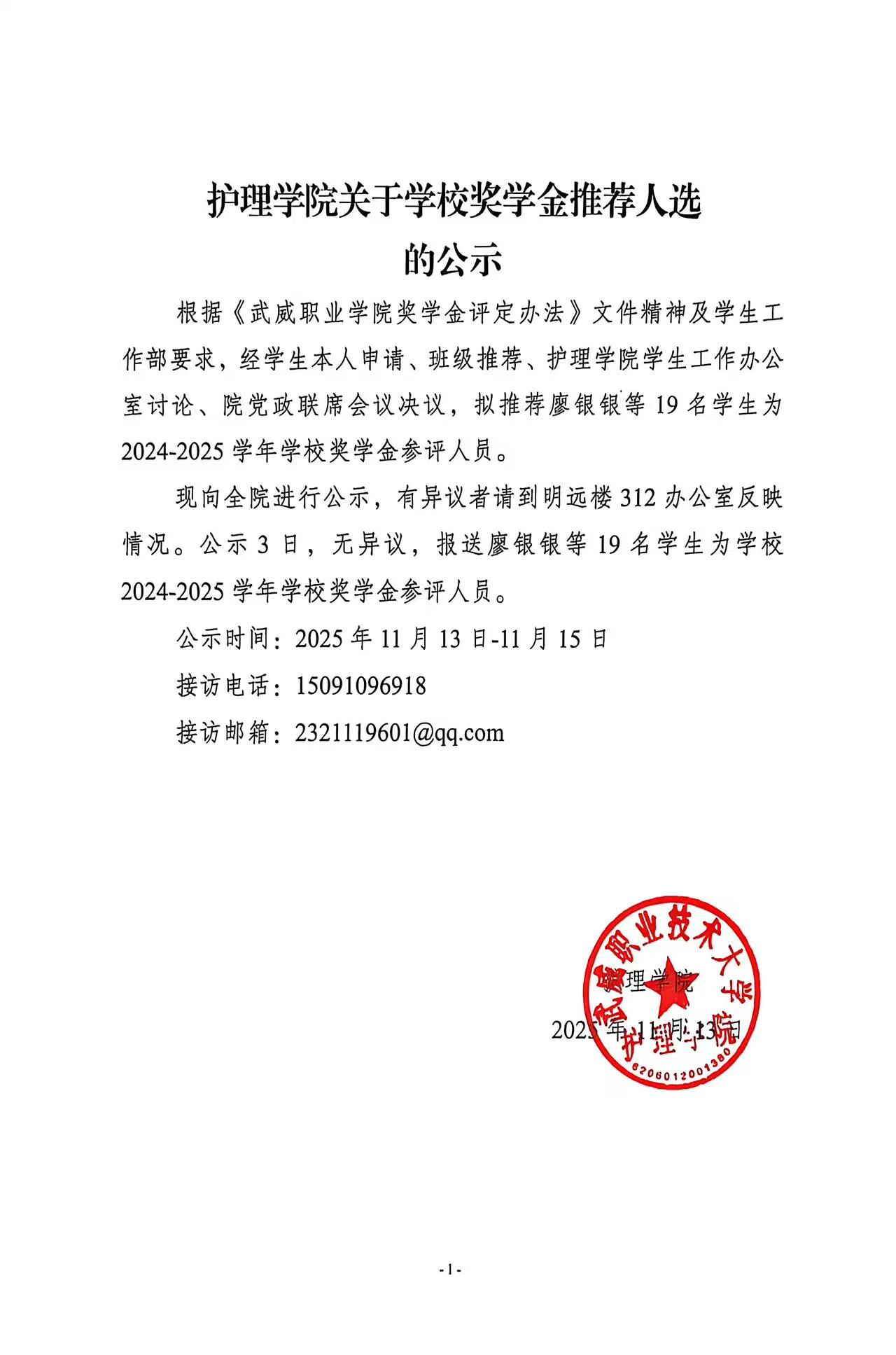 護理學(xué)院關(guān)于2025年獎補專項助學(xué)金推薦人選的公示