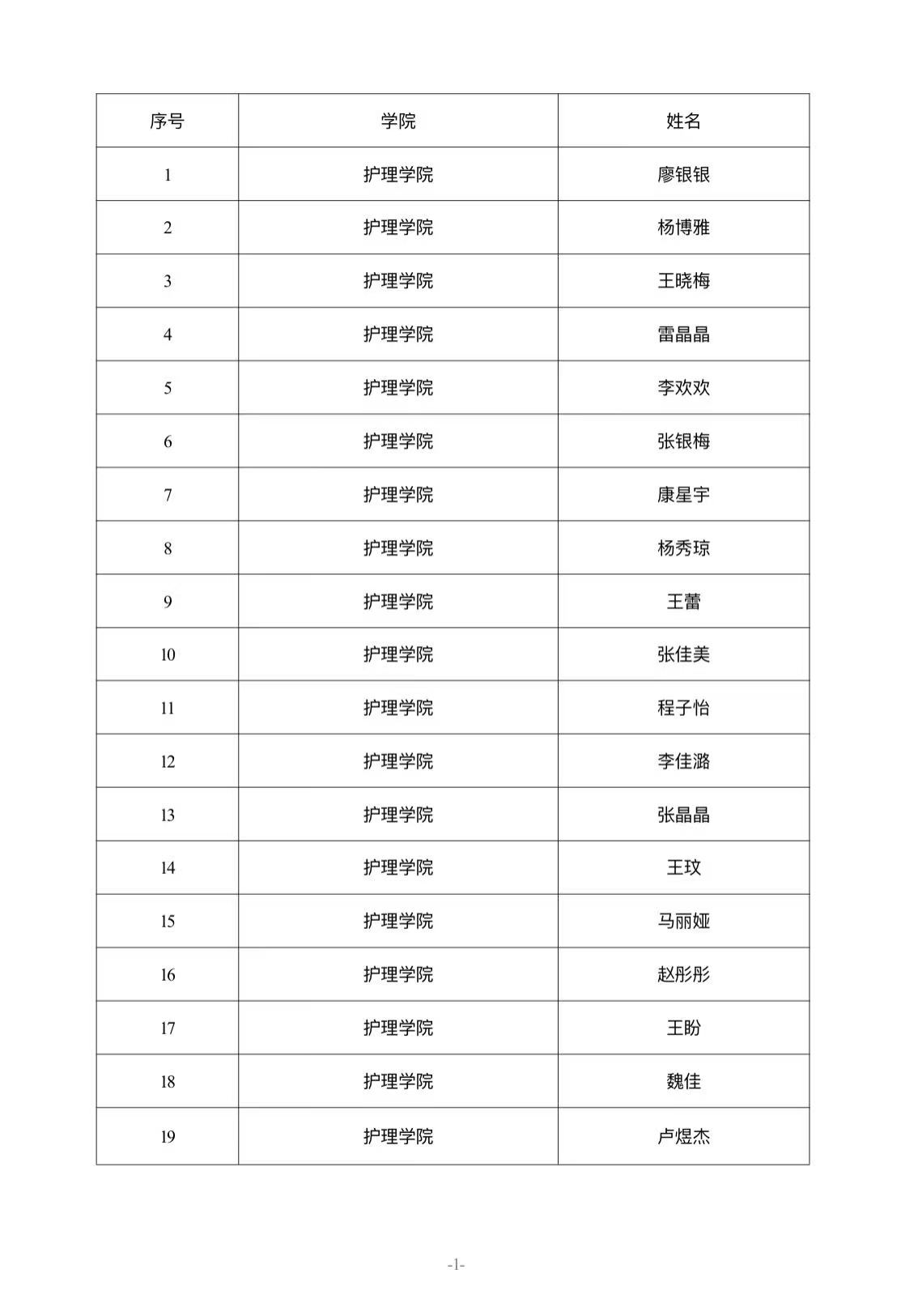 護理學(xué)院關(guān)于2025年國家助學(xué)金獲評人選的公示