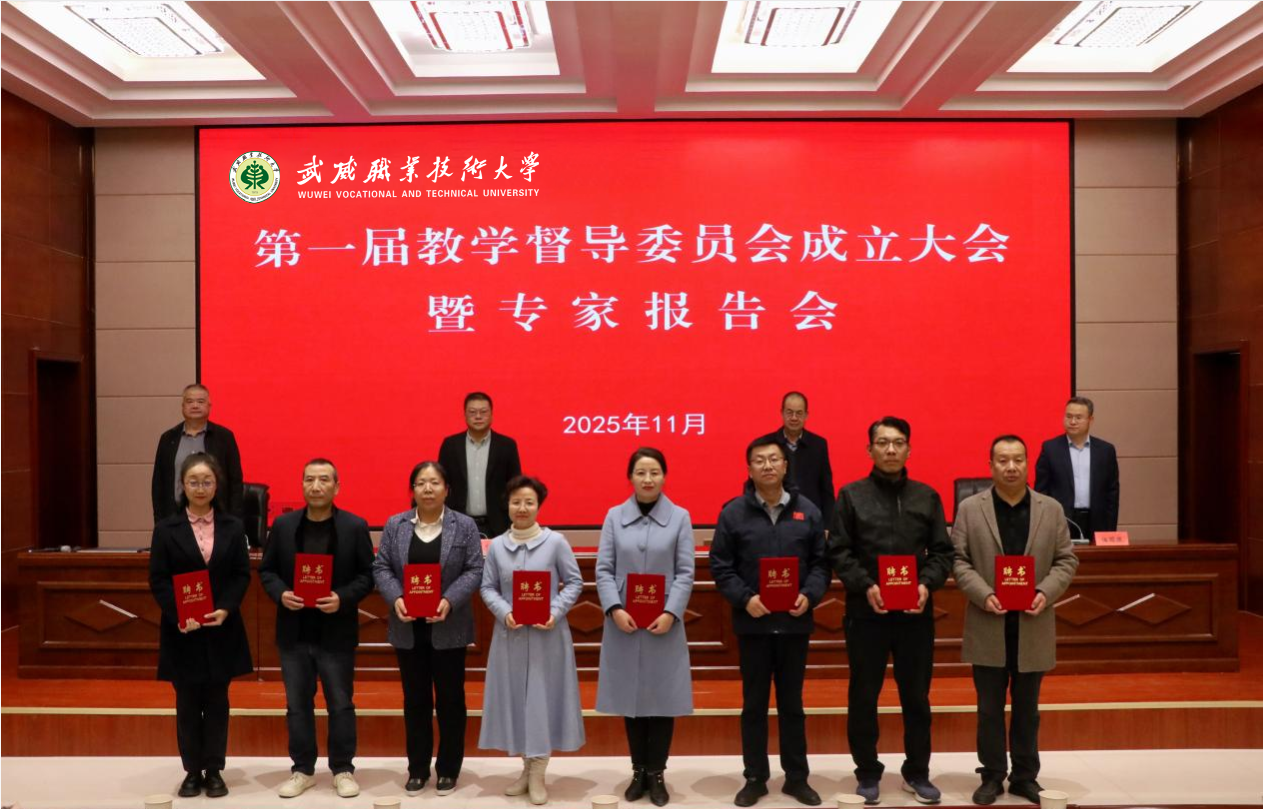 會(huì)上,翟存祥宣讀了《關(guān)于成立武威職業(yè)技術(shù)大學(xué)教學(xué)督導(dǎo)委員會(huì)的通知》,校領(lǐng)導(dǎo)為督導(dǎo)委員會(huì)成員代表頒發(fā)聘書。