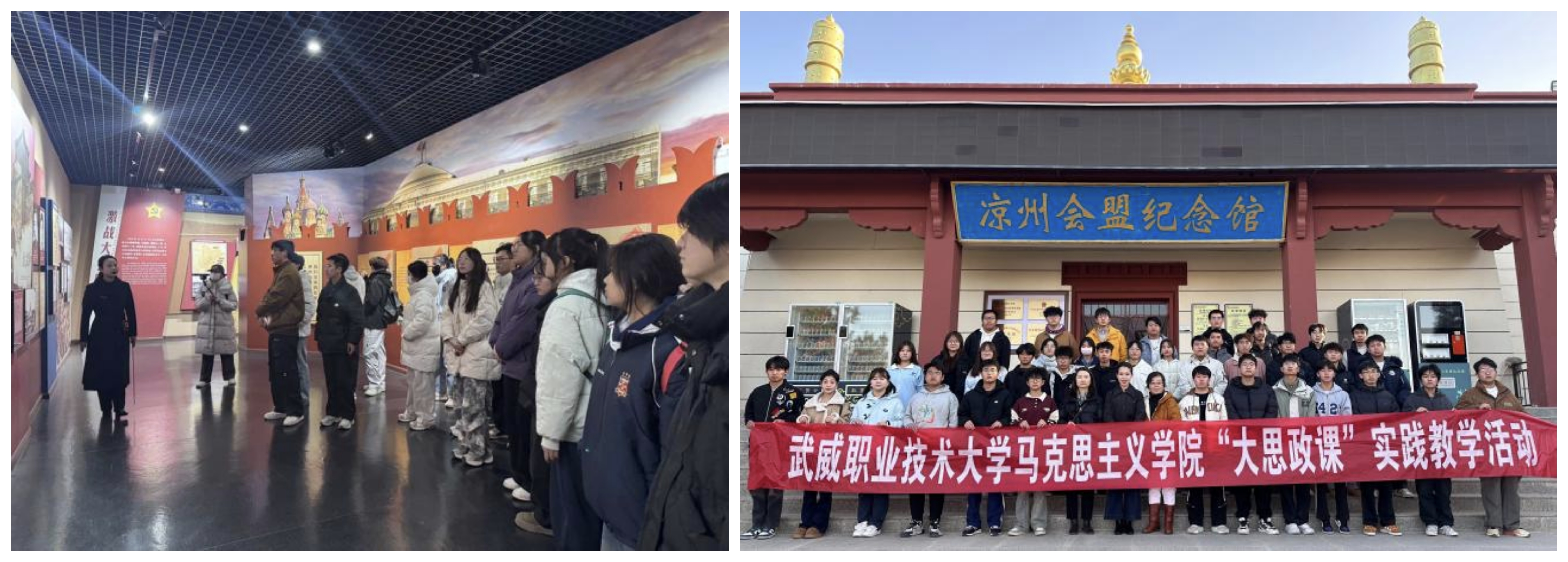 為深入推進(jìn)“大思政課”建設(shè),創(chuàng)新實(shí)踐育人模式,引導(dǎo)學(xué)生在實(shí)踐中感悟思想偉力、砥礪奮斗精神,11月21日—28日,馬克思主義學(xué)院分三個(gè)批次組織首批本科專業(yè)學(xué)生前往實(shí)踐教學(xué)基地古浪戰(zhàn)役紀(jì)念館和涼州會(huì)盟紀(jì)念館,開展了一場(chǎng)深刻而生動(dòng)的“行走的思政課”實(shí)踐教學(xué)活動(dòng)。