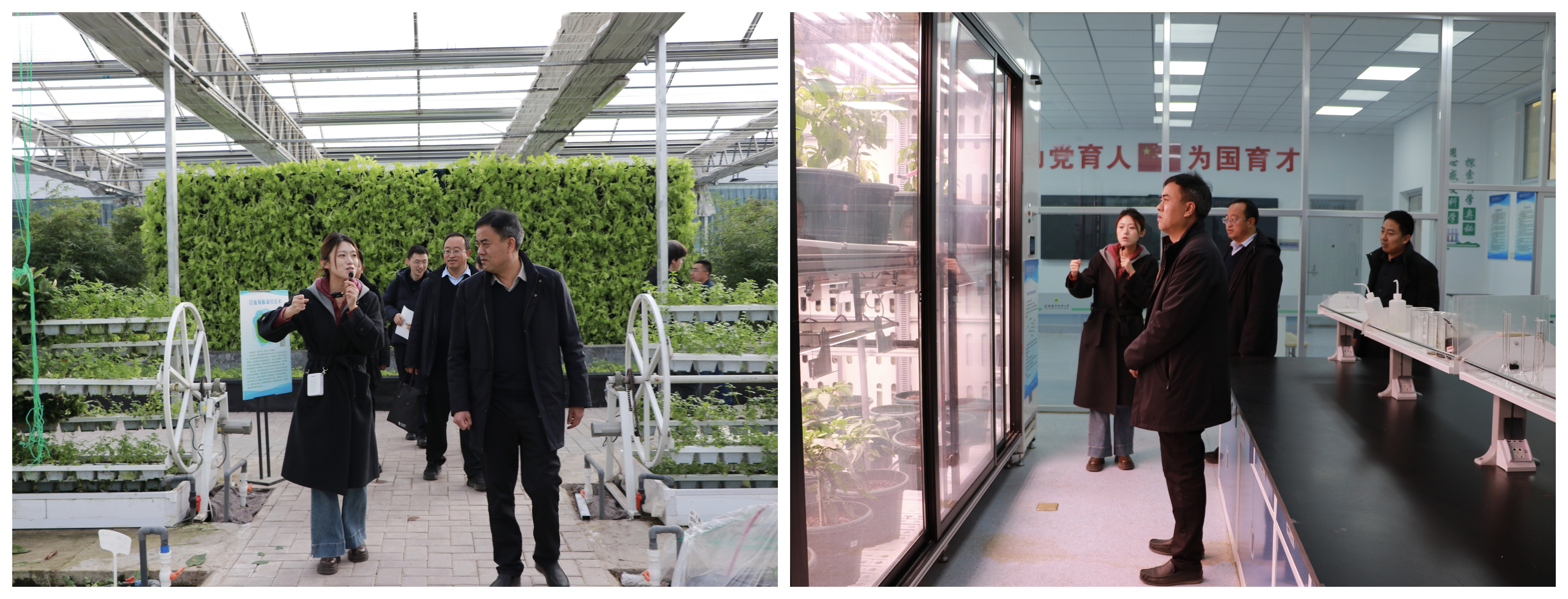 調(diào)研期間,莊浪職業(yè)教育中心一行四人先后參觀了農(nóng)產(chǎn)品質(zhì)量安全與檢測實(shí)訓(xùn)室、智慧設(shè)施農(nóng)業(yè)實(shí)訓(xùn)室、現(xiàn)代農(nóng)業(yè)生產(chǎn)性實(shí)訓(xùn)基地等多個實(shí)驗(yàn)實(shí)訓(xùn)場所。學(xué)院專業(yè)教師詳細(xì)介紹了各實(shí)訓(xùn)室的建設(shè)標(biāo)準(zhǔn)、設(shè)備配置、教學(xué)功能及實(shí)訓(xùn)課程開展情況,展示了學(xué)院在教育教學(xué)方面取得的成果。在現(xiàn)代農(nóng)業(yè)生產(chǎn)性實(shí)訓(xùn)基地,雙方圍繞中高職貫通培養(yǎng)、實(shí)驗(yàn)實(shí)訓(xùn)室建設(shè)等內(nèi)容深入交流,申賓德介紹了學(xué)院專業(yè)特色、課程體系、師資隊(duì)伍及學(xué)生升學(xué)就業(yè)等方面的內(nèi)容。王瑾楠結(jié)合本校專業(yè)辦學(xué)實(shí)際,交流了在貫通培養(yǎng)過程中遇到的課程銜接、人才培養(yǎng)標(biāo)準(zhǔn)等問題。