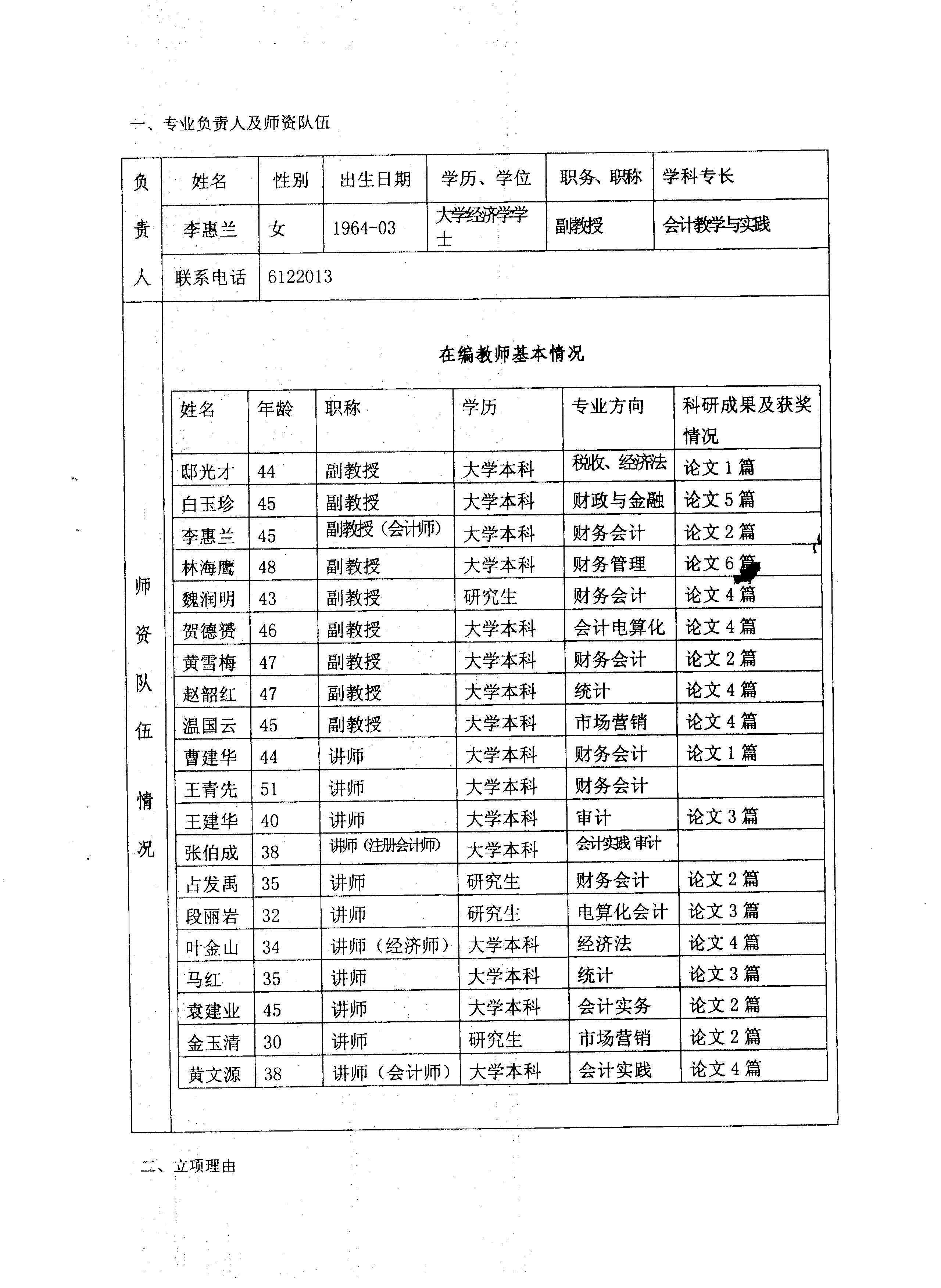 院級(jí)重點(diǎn)專業(yè)——會(huì)計(jì)專業(yè)申報(bào)表