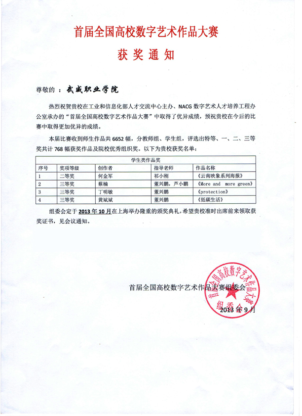我院學(xué)生在全國高校數(shù)字藝術(shù)作品大賽中獲獎(jiǎng)