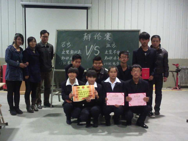 本次辯論賽分為初賽、復(fù)賽、半決賽和決賽四個環(huán)節(jié),參賽班級為汽車工程系的13級全體大專班。經(jīng)過激烈的唇槍舌戰(zhàn),最終,汽車電子班和汽車營銷班憑借出色的反應(yīng)能力和嚴(yán)密的邏輯思維能力脫穎而出,進入決賽;決賽中雙方辯手圍繞“文憑能否代表知識水平”展開了激烈的辯論,最終汽車營銷班奪取了冠軍,李金潭等四名同學(xué)贏得了“最佳辯手”稱號。