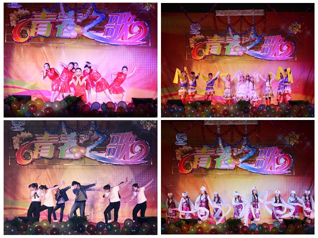 本次晚會以“青春之歌,歡送畢業(yè)生”為主題,共表演了17個(gè)精彩節(jié)目。晚上7點(diǎn)整,開場舞《倍兒爽》、《小蘋果》為整臺晚會拉開了帷幕。在晚會上,《格桑拉》、《吉祥謠》及《青春踢踏》等少數(shù)民族舞蹈,體現(xiàn)了五十六個(gè)民族大團(tuán)結(jié),互相共融的感情;《感恩的心》表達(dá)了學(xué)生們對老師一年來孜孜不倦、淳淳教誨的感恩之情;《天下父母心》表達(dá)了對父母的養(yǎng)育之恩的感謝;舞蹈《驚鴻舞》和《The boys》等給觀眾帶來了別樣的風(fēng)情,展現(xiàn)出青年學(xué)子活力青春;大型舞蹈《致那些年逝去的青春》和《夢回敦煌》帶給觀眾視覺盛宴;舞蹈《串燒》結(jié)合了幾首近幾年流行的膾炙人口的歌曲,將不同舞蹈串燒一起。青春現(xiàn)代舞《Expect》將整個(gè)晚會推向高潮。