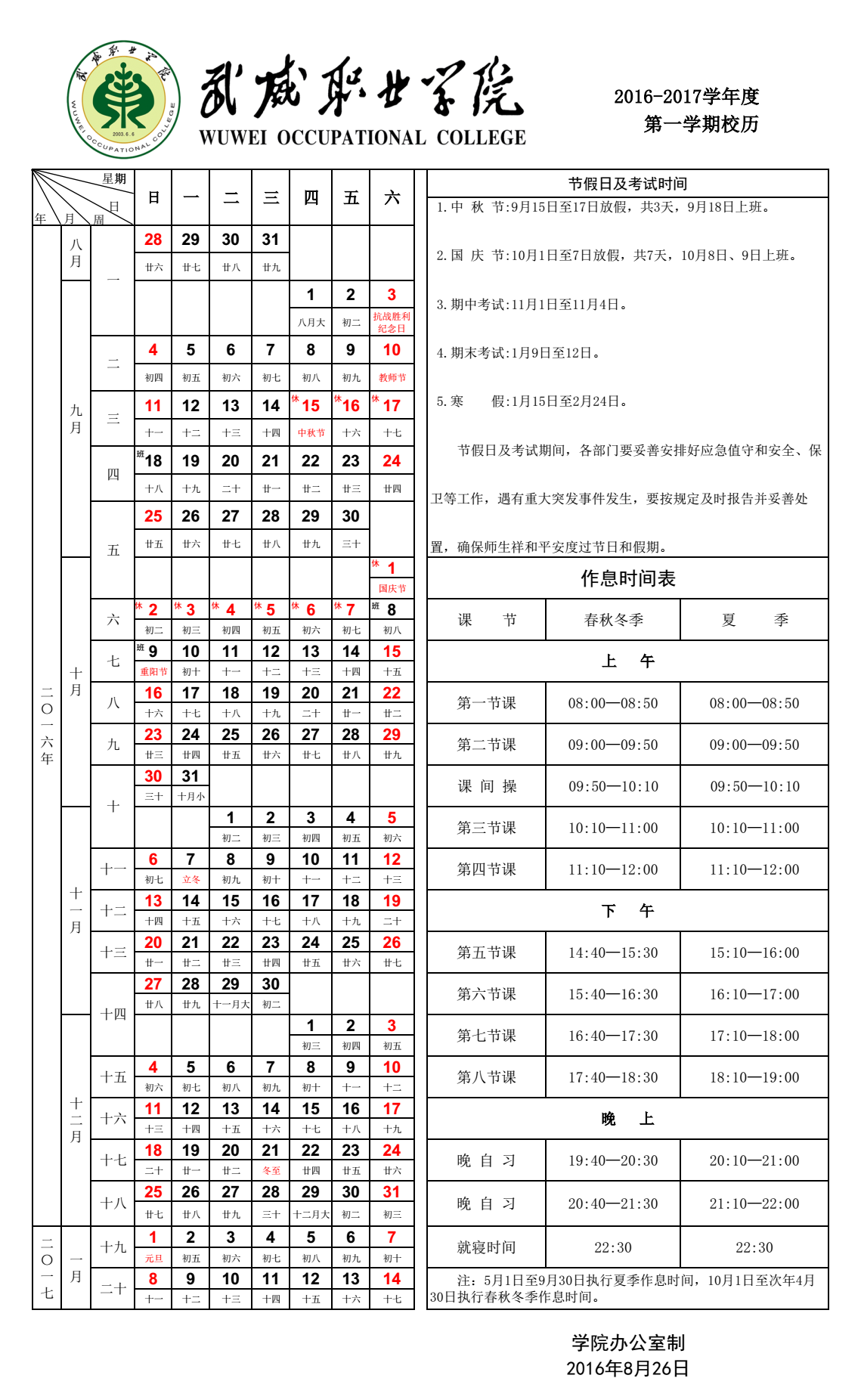 武威職業(yè)技術大學2025年10月份值班值守安排表