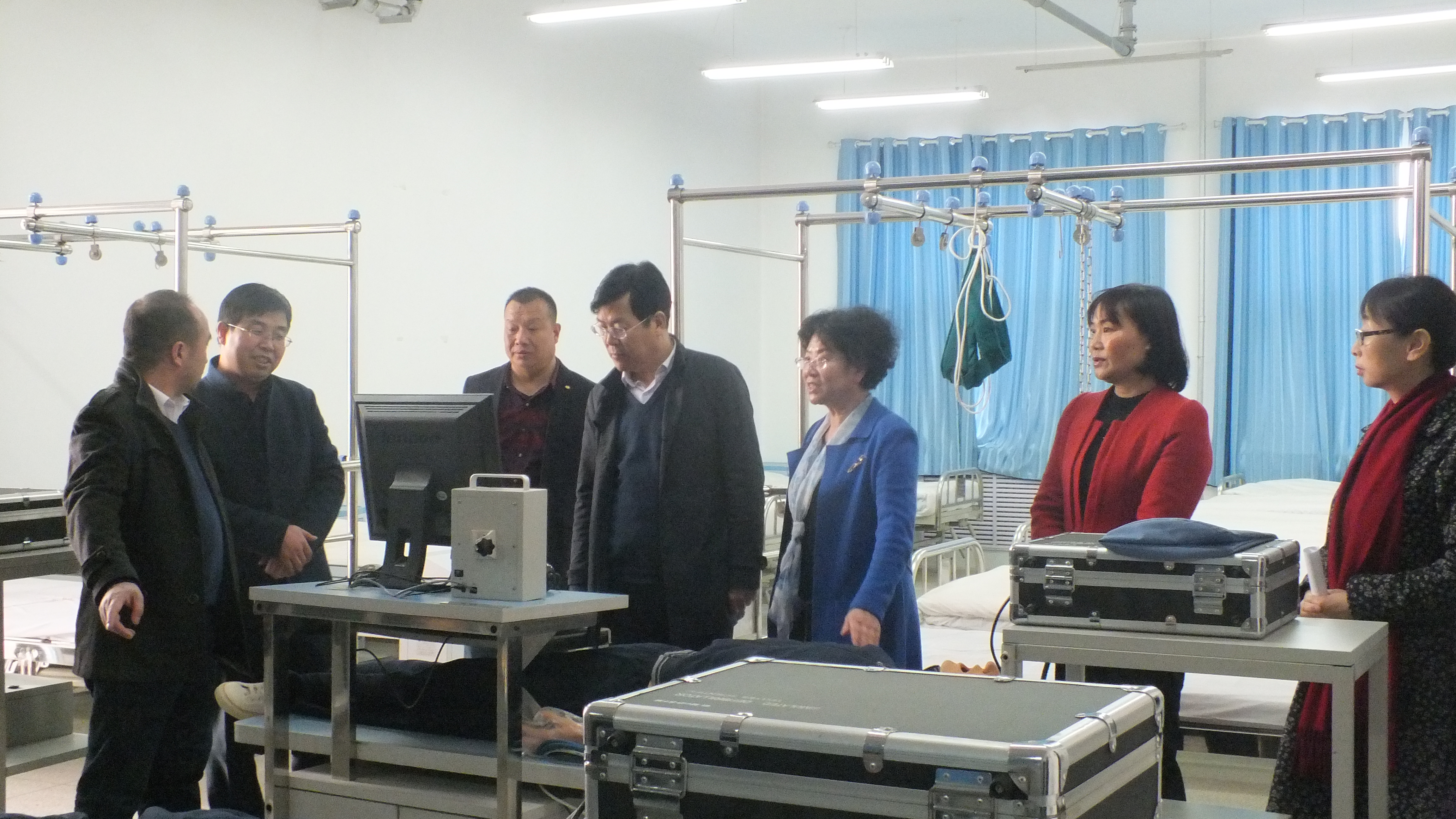 毛校長(zhǎng)一行參觀了護(hù)理系的生命科技館、機(jī)能實(shí)訓(xùn)室、基護(hù)實(shí)訓(xùn)室、內(nèi)外科實(shí)訓(xùn)室等醫(yī)學(xué)類實(shí)訓(xùn)室,詳細(xì)了解了實(shí)驗(yàn)設(shè)備的運(yùn)行情況和實(shí)驗(yàn)實(shí)訓(xùn)課程的教學(xué)管理模式。潘玉華向來(lái)賓們介紹了學(xué)院申辦臨床醫(yī)學(xué)專業(yè)的進(jìn)展,以及我院實(shí)訓(xùn)課程建設(shè)和籌建實(shí)驗(yàn)實(shí)訓(xùn)室取得的成果。
