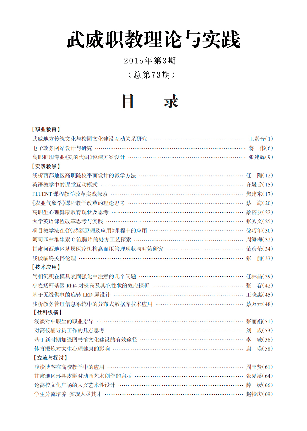 2015年《武威職教理論與實(shí)踐》目錄