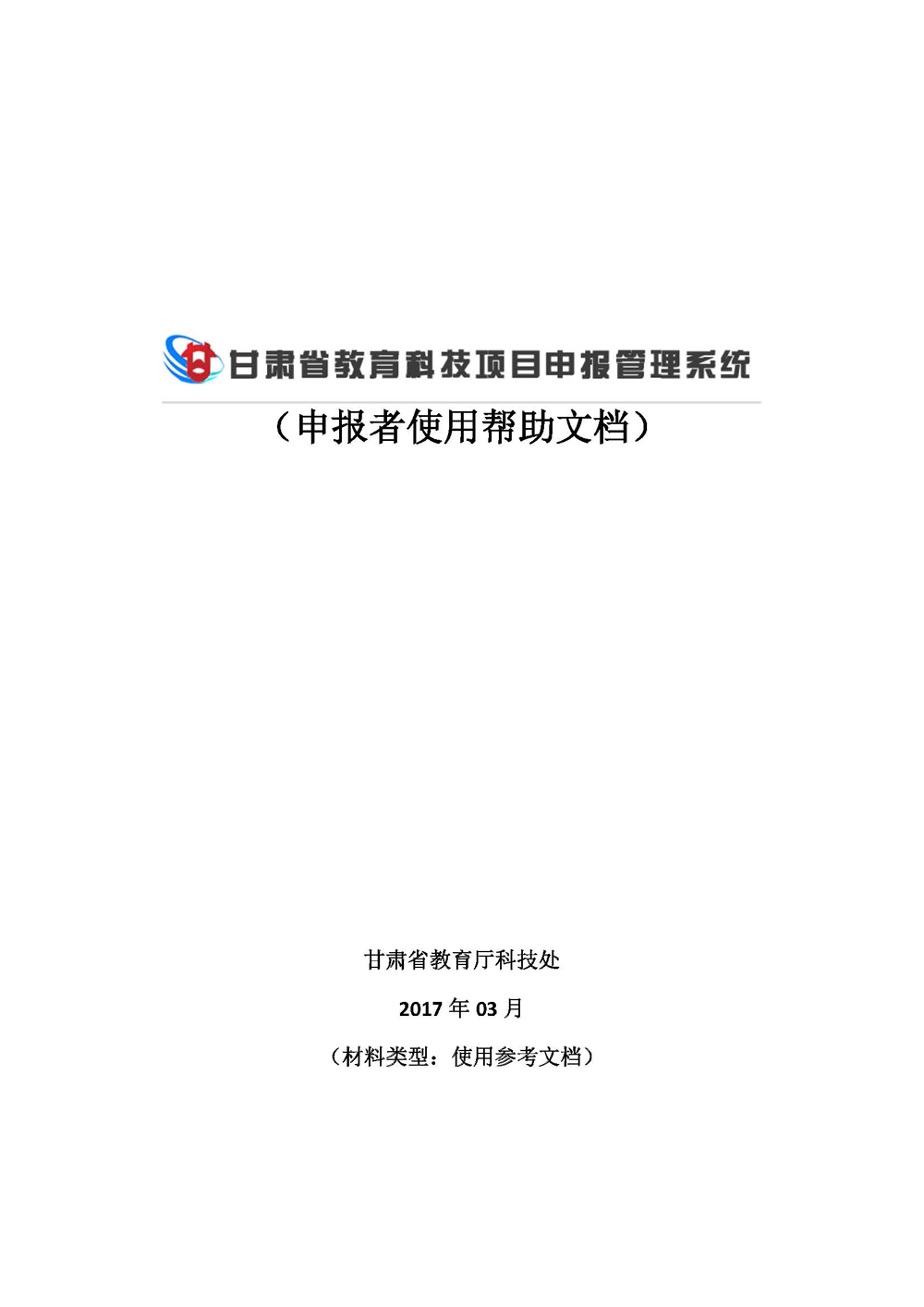甘肅省教育廳關于申報2017年度甘肅省高等學校科研項目-申報者使用文檔