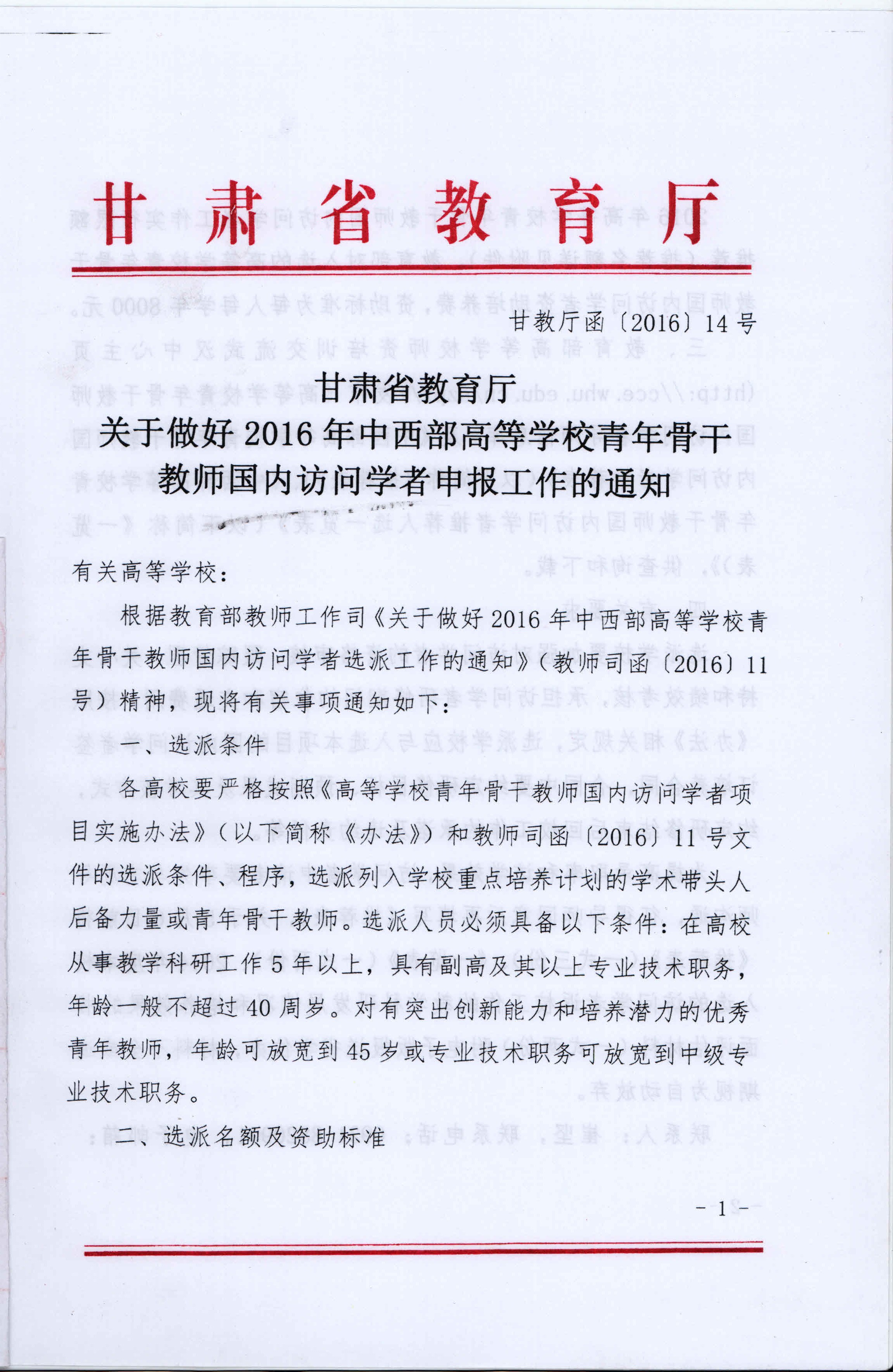 關(guān)于做好2016年青年骨干教師國內(nèi)訪問學(xué)者申報工作的通知