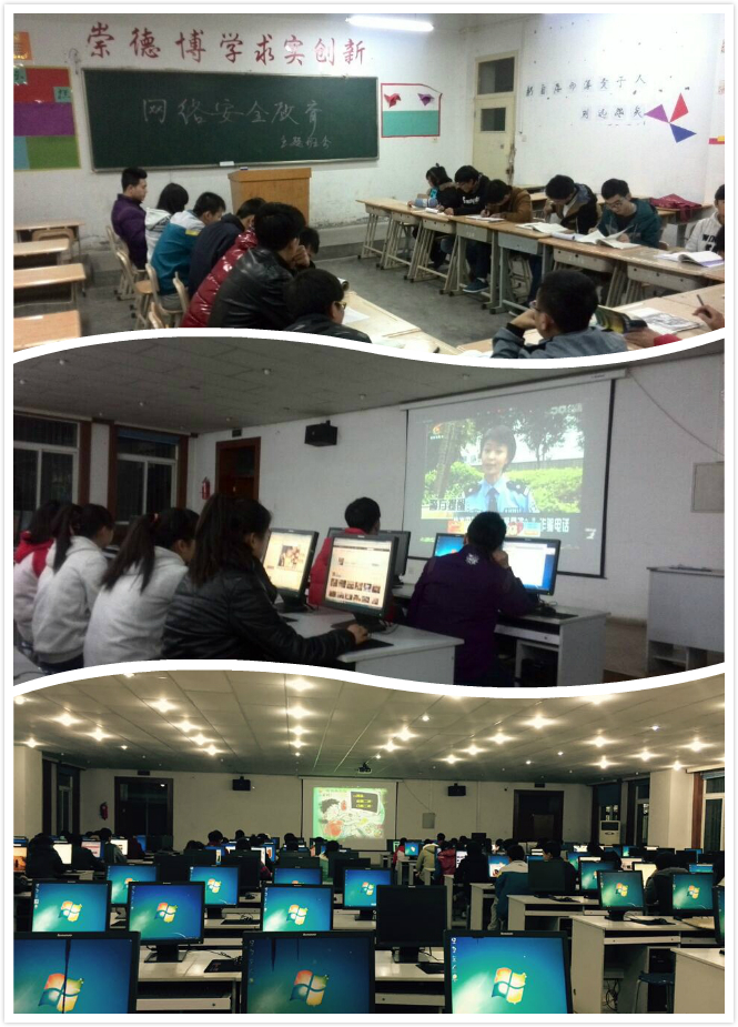 電信系團(tuán)總支組織各班團(tuán)支部于2014年11月24日至30日,深入開(kāi)展了以“網(wǎng)絡(luò)安全宣傳教育”為主題的活動(dòng)。宣傳周期間,組織各班觀看了與網(wǎng)絡(luò)安全有關(guān)的紀(jì)錄片及電影,播放中央網(wǎng)信辦制作的“網(wǎng)絡(luò)安全在我身邊”公益短片等視頻資料;通過(guò)QQ、微博、微信等多種網(wǎng)絡(luò)傳播渠道,宣傳網(wǎng)絡(luò)安全知識(shí);召開(kāi)“網(wǎng)絡(luò)安全教育”主題班會(huì),學(xué)生討論并舉例說(shuō)明大家在網(wǎng)絡(luò)中親身經(jīng)歷過(guò)的網(wǎng)絡(luò)危害,并分析其原因,使同學(xué)們了解更多的網(wǎng)絡(luò)詐騙形式。