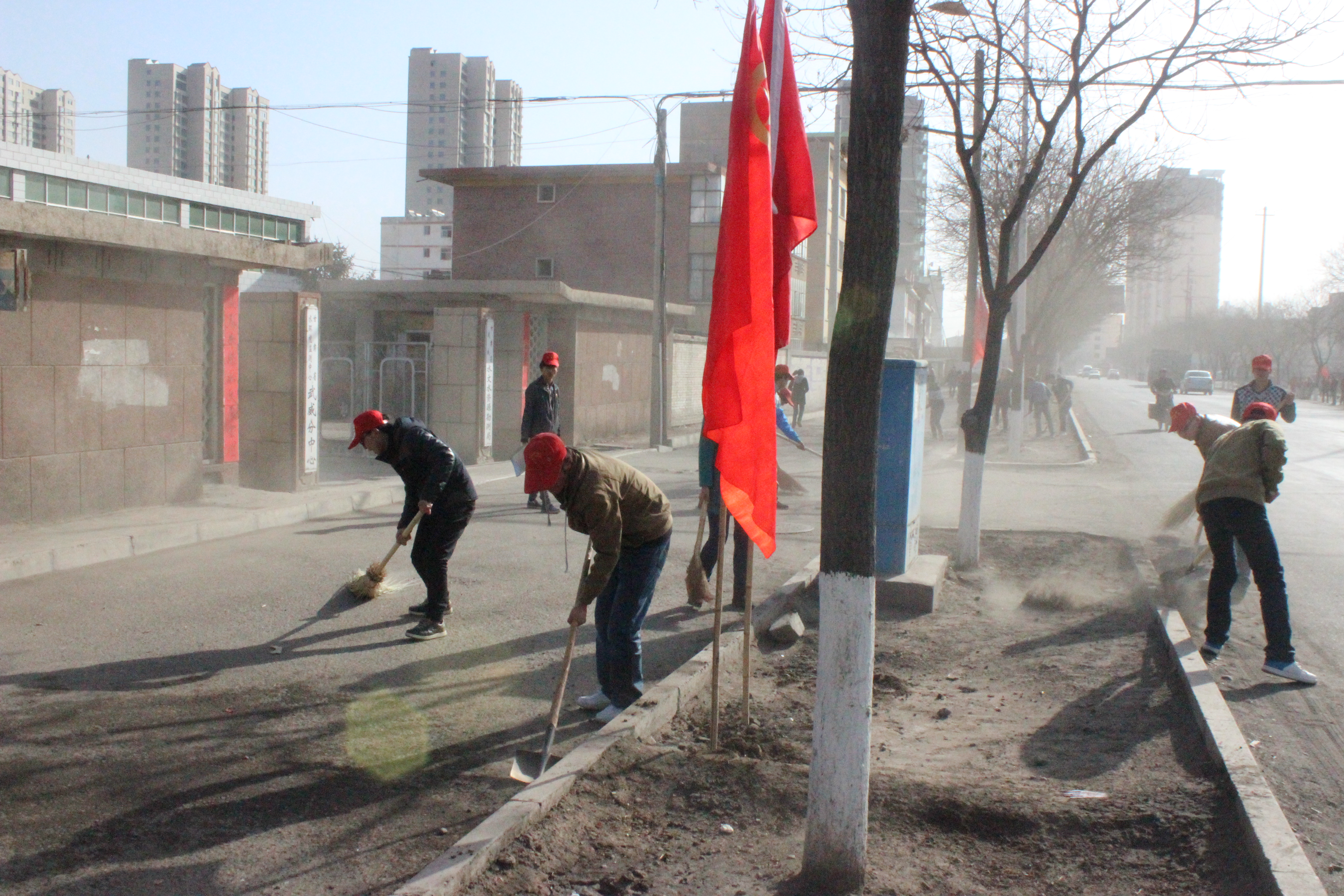 上午10點,同學(xué)們在一號教學(xué)樓前廣場集合,唐宗舜老師進(jìn)行了動員安排。大家合理分工,積極配合,不怕臟不怕累,通過兩個小時的勞動對校門口至水文勘測站路段北側(cè)的塵土和垃圾進(jìn)行了清理,同學(xué)們默默地奉獻(xiàn)自己的力量,也成了馬路上一道亮麗的風(fēng)景。
