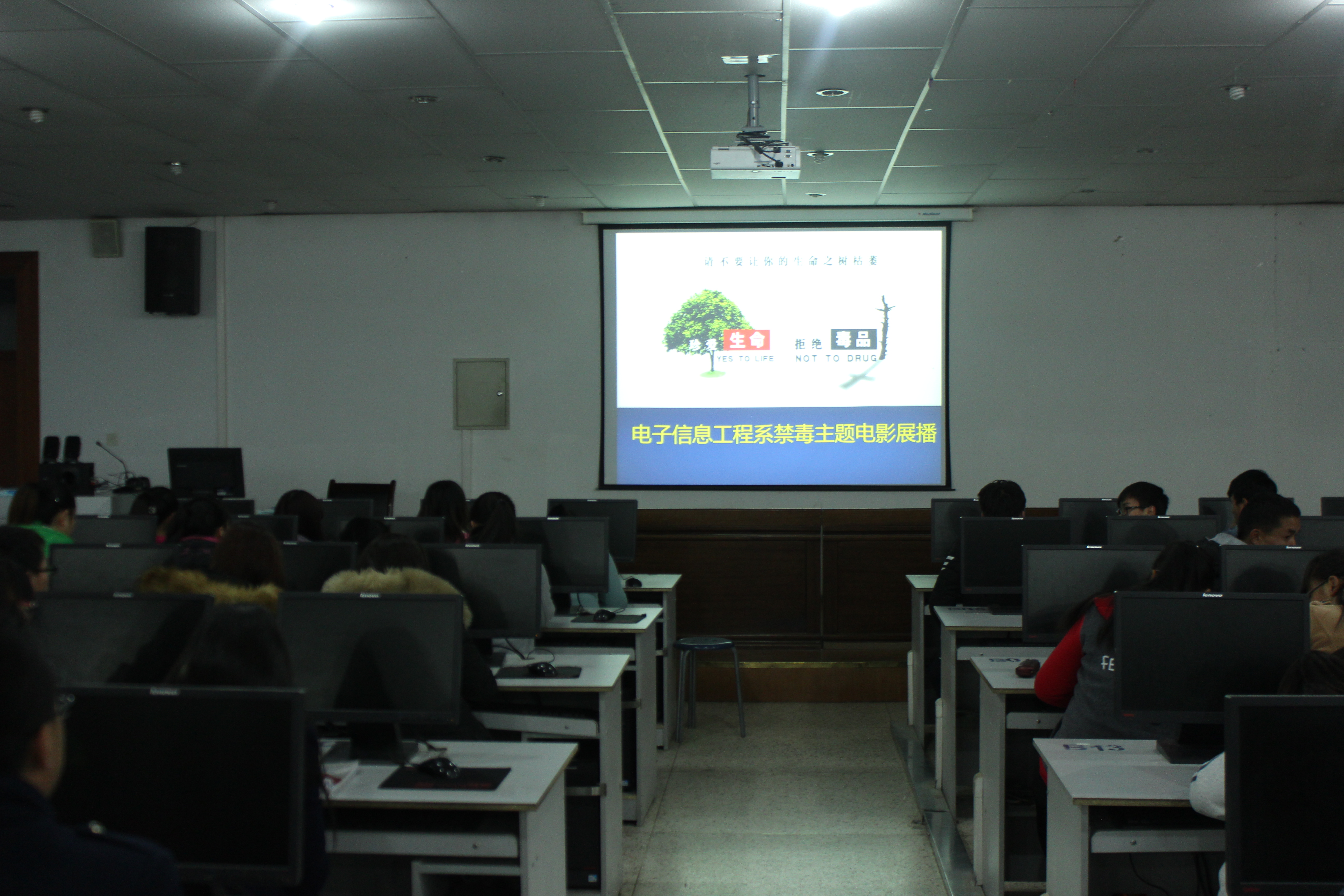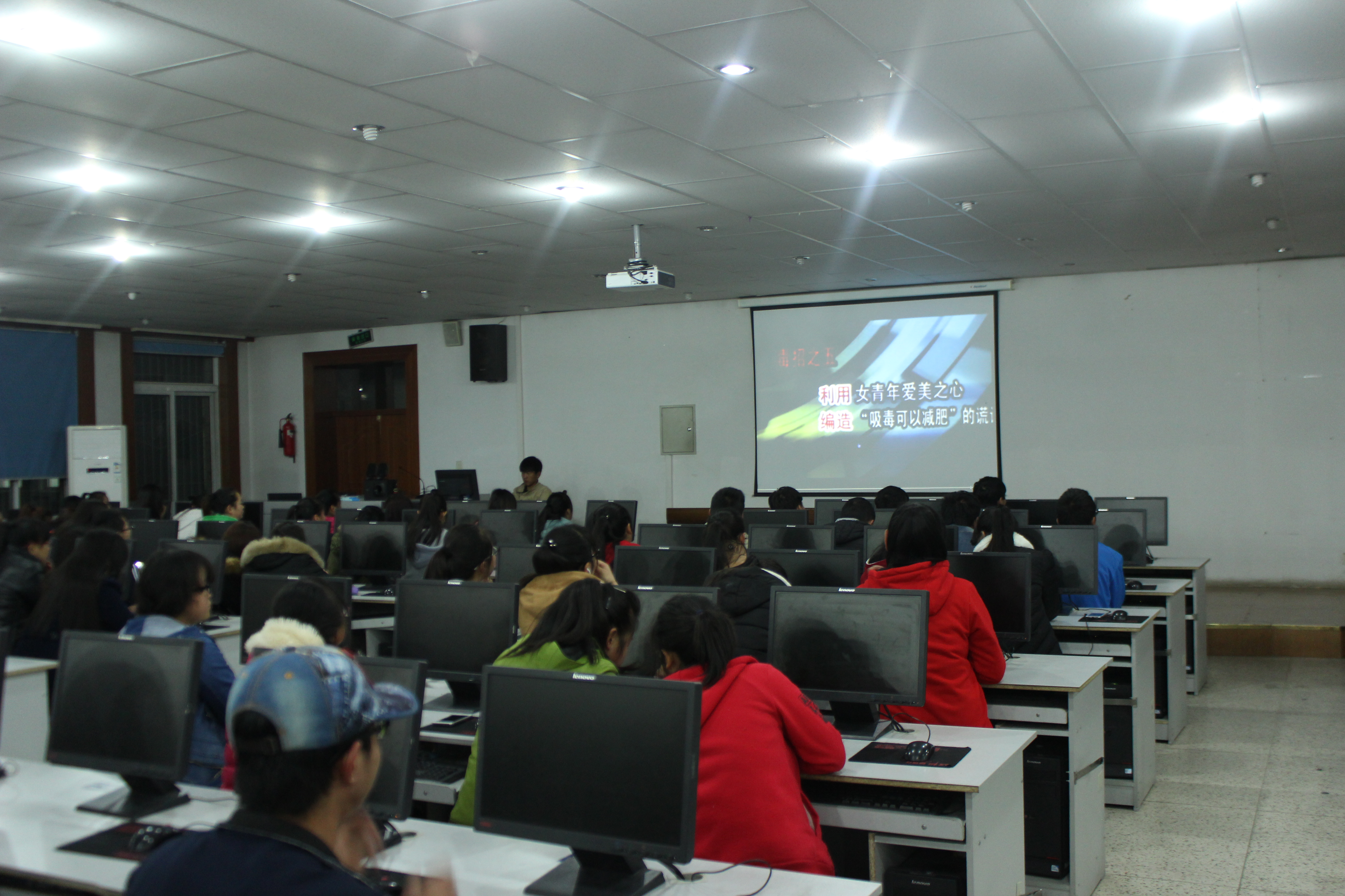2.組織學(xué)生觀看中國(guó)禁毒網(wǎng)相關(guān)禁毒教育動(dòng)畫(huà)、視頻。讓同學(xué)們了解吸毒的危害,讓吸毒人員的痛苦活生生地展現(xiàn)在學(xué)生面前,學(xué)生親眼目睹了吸毒人員的生活,親耳聆聽(tīng)了吸毒人員的述說(shuō),這些都深深震撼了我們學(xué)生的心靈,通過(guò)這樣場(chǎng)面,學(xué)生對(duì)毒品有了更深刻的認(rèn)識(shí),對(duì)吸毒的危害有了深刻的體會(huì)。通過(guò)觀看毒品危害相關(guān)教育視頻,同學(xué)們都表達(dá)了拒毒、禁毒的決心,表示積極打擊吸、販毒行為,讓毒品在我們的生活中消失。