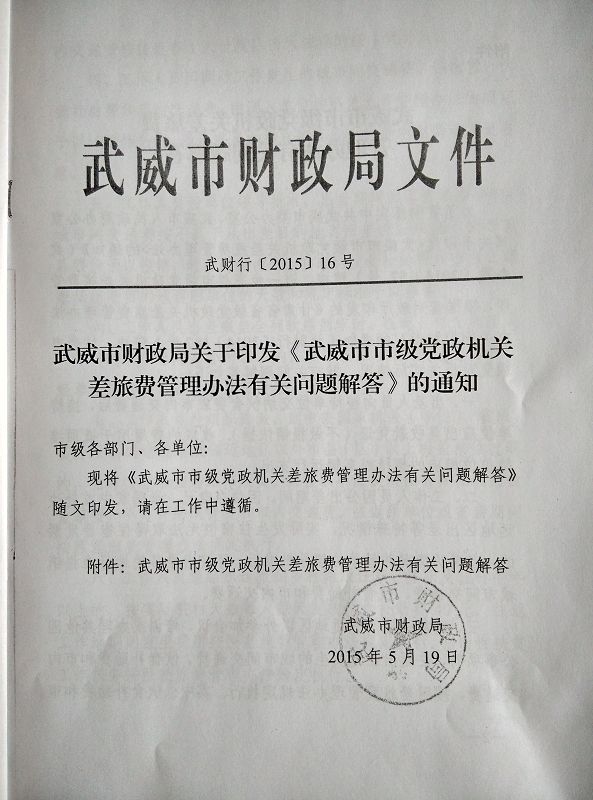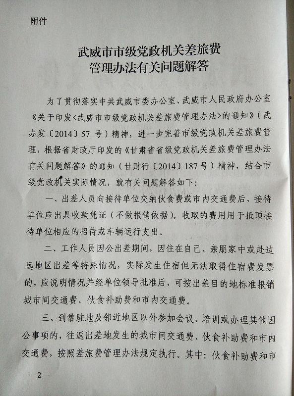 <轉發(fā)>武威市市級黨政機關差旅費管理辦法有關問題解答